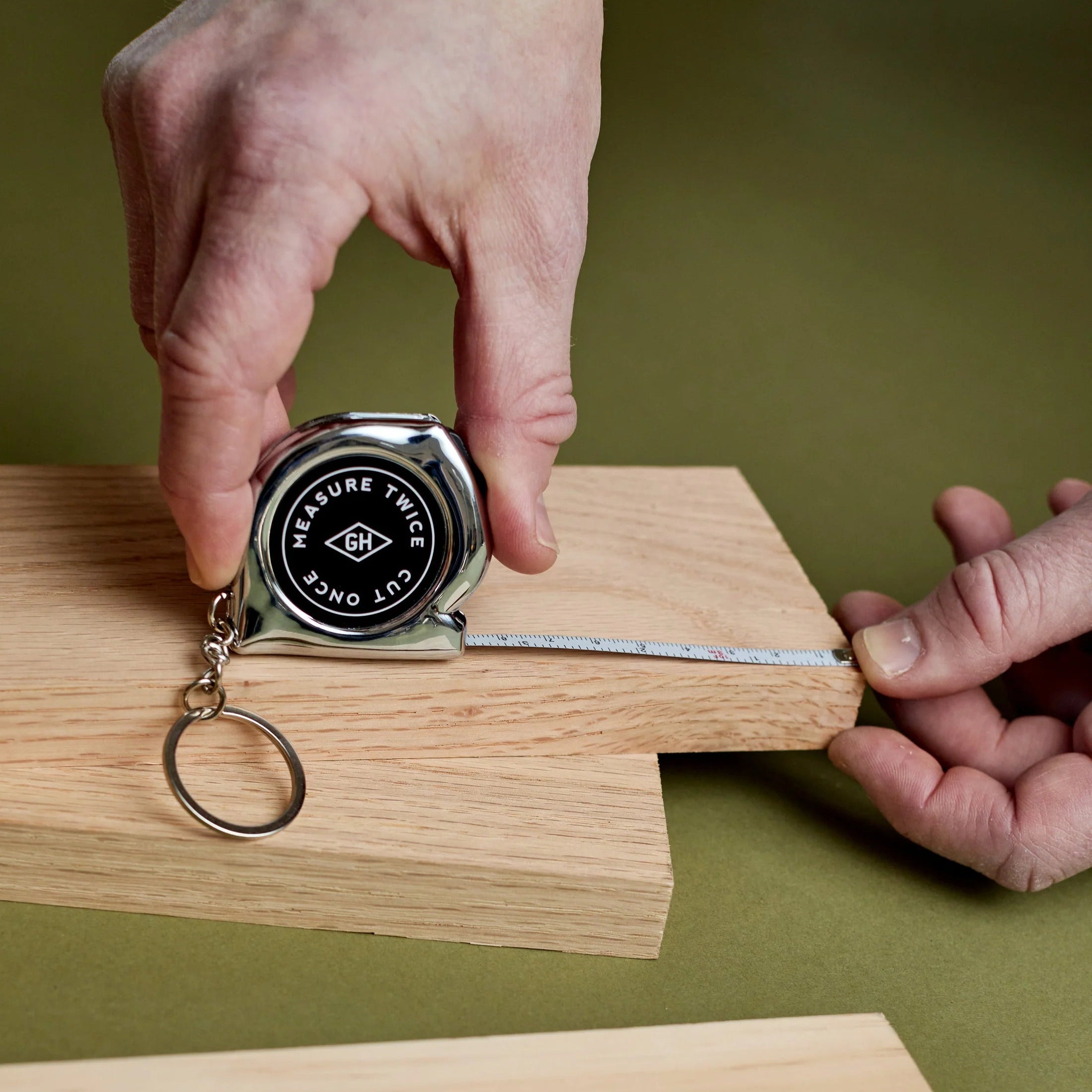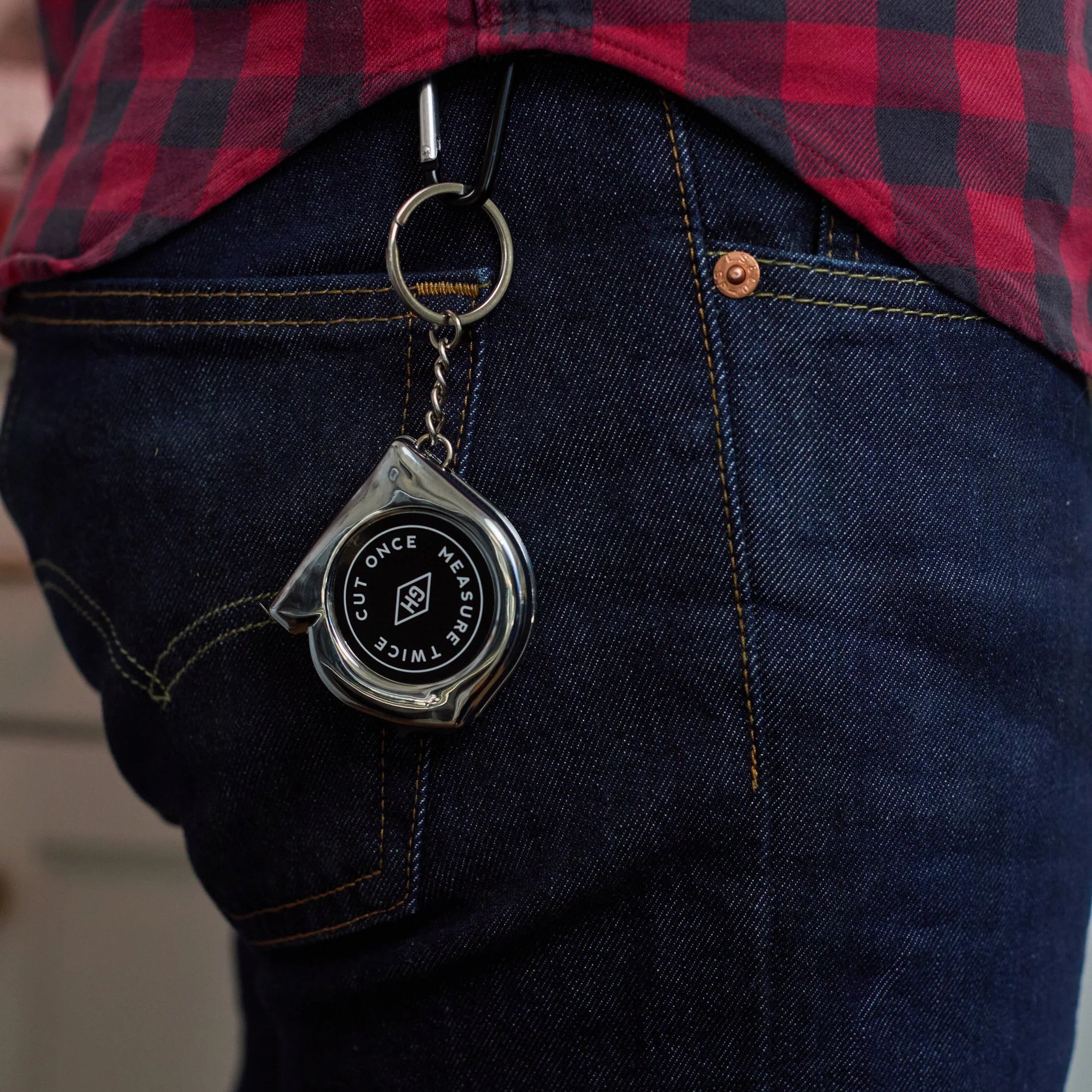 Un práctico llavero cinta metrica para tomar medidas en cualquier situación.