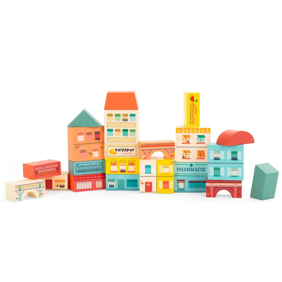 Los pequeños arquitectos se dejarán llevar por el arte de la construcción, dando forma a su propio pueblo con bloques de madera. Desde una farmacia hasta una panadería, cada bloque invita a la imaginación para vivir emocionantes aventuras de construcción.