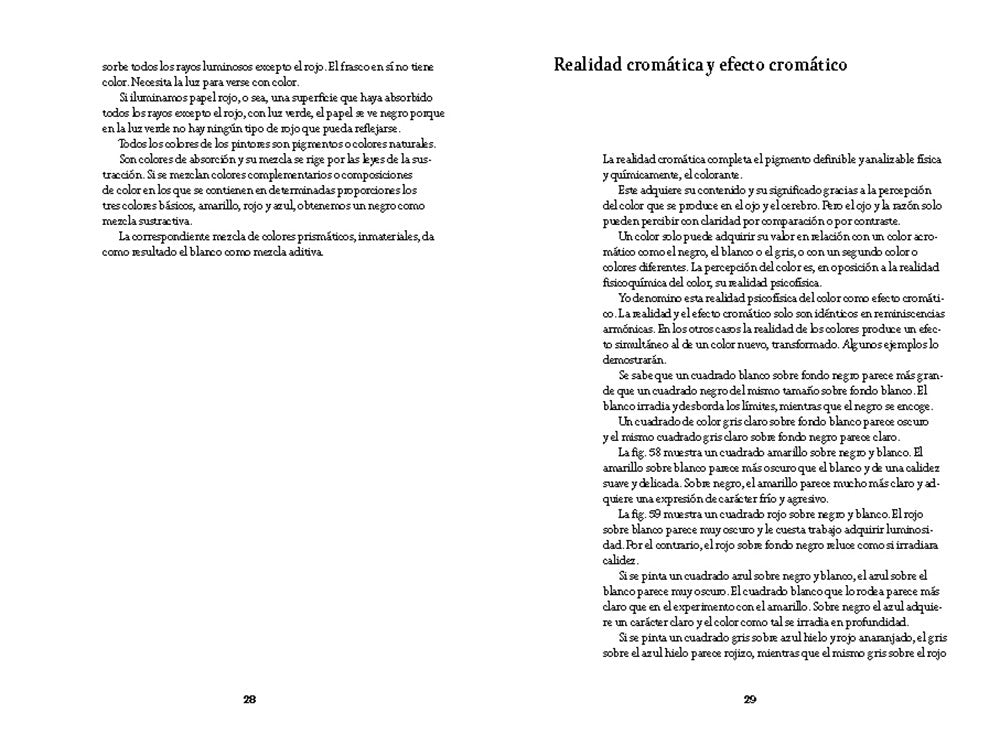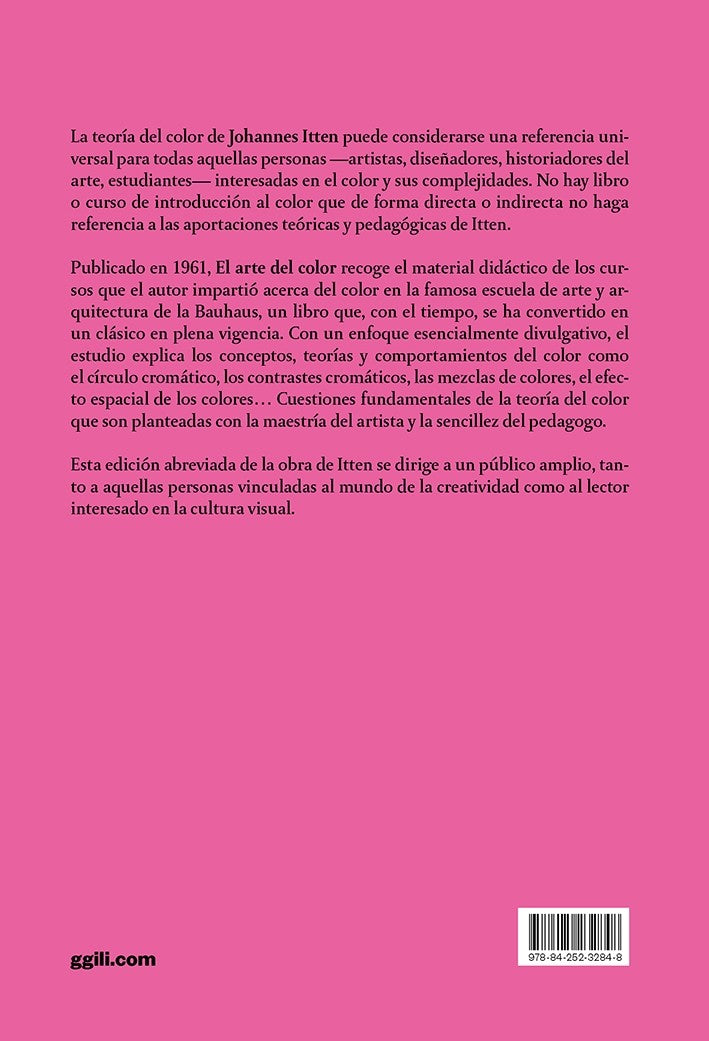 Publicado en 1961, El arte del color recoge el material didáctico de los cursos que el autor impartió acerca del color en la famosa escuela de arte y arquitectura de la Bauhaus, un libro que, con el tiempo, se ha convertido en un clásico en plena vigencia. Con un enfoque esencialmente divulgativo, el estudio explica los conceptos, teorías y comportamientos del color como el círculo cromático, los contrastes cromáticos, las mezclas de colores, el efecto espacial de los colores… Cuestiones fundamentales de la teoría del color que son planteadas con la maestría del artista y la sencillez del pedagogo.