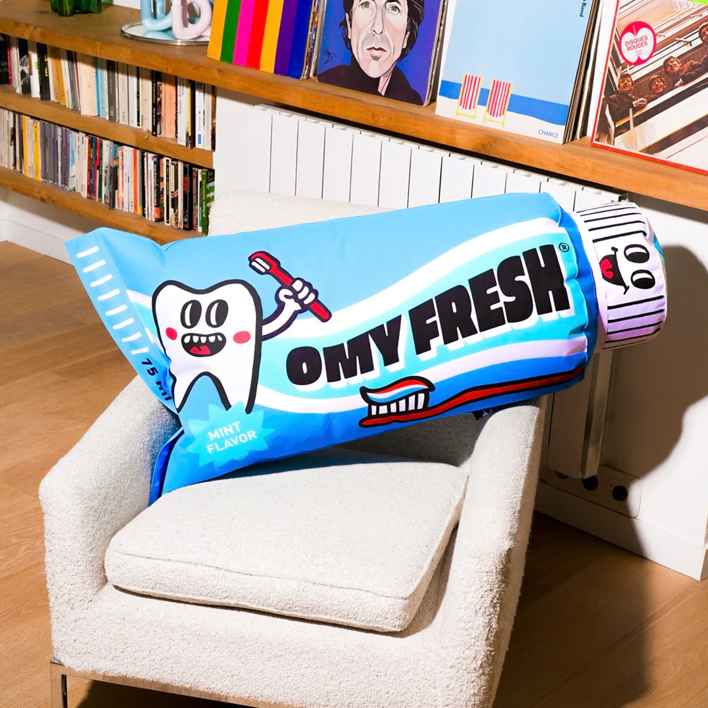Esta almohada inflable con su aspecto alegre y peculiar es un objeto híbrido: mitad decoración, mitad almohada.