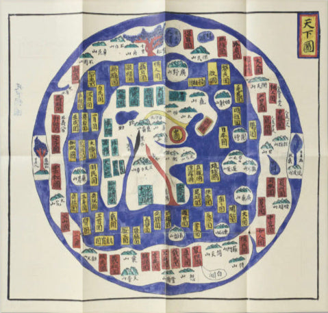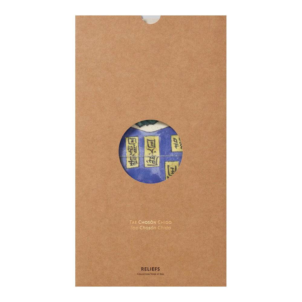Creado por un geógrafo anónimo alrededor de 1875, este mapa del Imperio Chosŏn refleja la proyección ch’onhado, un estilo cartográfico coreano que significa «mapa del mundo bajo los cielos», vinculado a la cosmografía budista. Desarrollados en el siglo XVII, los mapas ch’onhado se mantuvieron populares hasta el siglo XIX. Son circulares, simbolizando una Tierra plana, y tienen una perspectiva sinocéntrica. El Tae Chosŏn Chido (Gran Mapa de Chosŏn) muestra a China en el centro como un círculo rojo con el interior amarillo, a Corea (Chosŏn) como un rectángulo con borde amarillo e interior rojo, y a Japón en un rectángulo amarillo al este. Los anillos circundantes de tierra y mar representan lugares reales y míticos, extraídos principalmente de la literatura clásica china. Estos mapas, exclusivos de Corea, solían ser las primeras páginas de los atlas, ofreciendo una visión del mundo antes de los mapas más detallados de cada región.