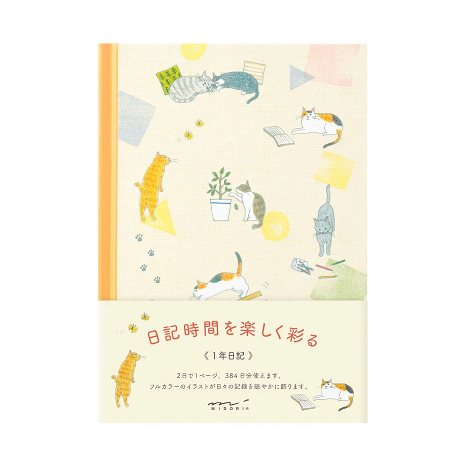 Diario divertido con 4 diseños de páginas a todo color. Puedes escribir el diario durante 1 año completo con 2 días por página. También te divertirás con una encantadora ilustración de gatos que describen su vida diaria.