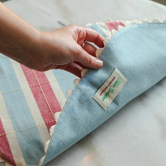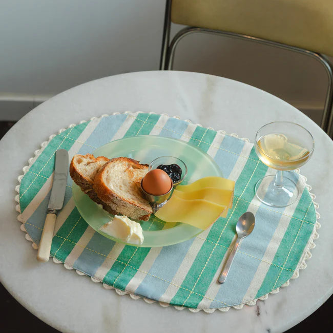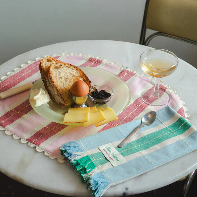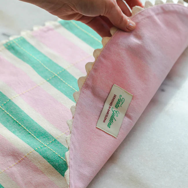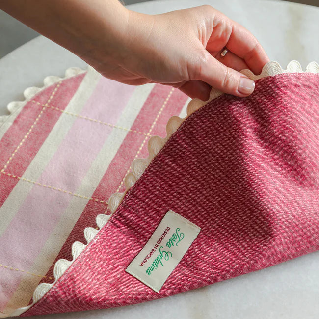 Tiene ese aire de cocina de la abuela, pero con mejores playlists. A rayas y perfecto para desayunos, comidas o charlas eternas con café. Además, son reversibles, con un lado liso por si te apetece cambiar el mood.