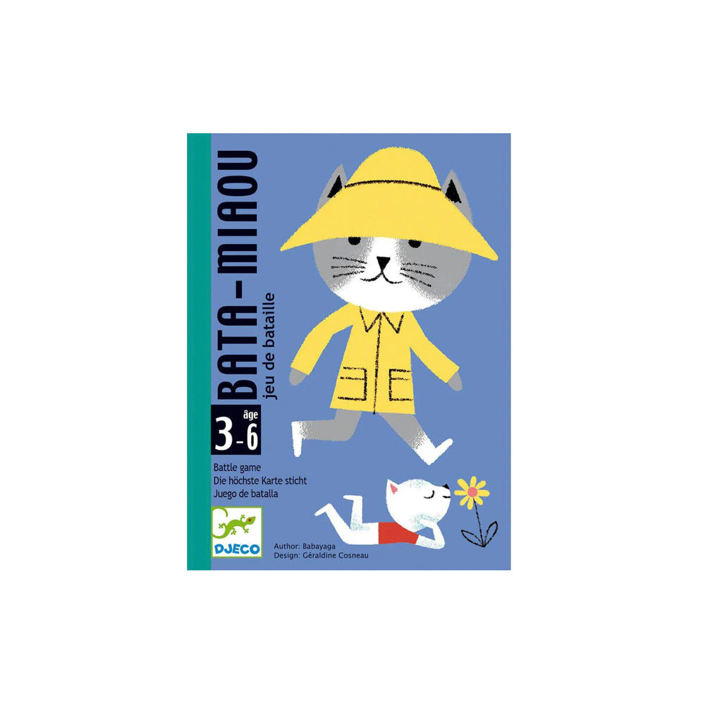 Para jugar: se reparten todas las cartas a partes iguales entre todos los jugadores. A la misma vez, todos los jugadores destapan una carta de su montón. El gato más grande, gana. Si los gatos son iguales, gana quien antes grite: "¡Bata-miaou!".