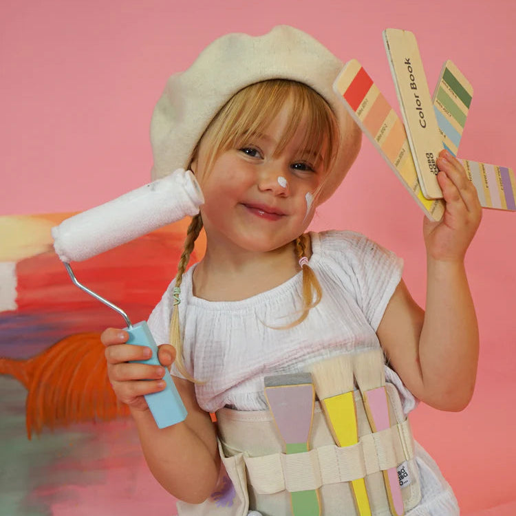 Este cinturón incluye todo lo necesario para una inspiradora sesión de arte: pinceles, rodillo, espátula y carta de colores. Todo está organizado de forma inteligente en este práctico cinturón, lo que permite a los niños llevar fácilmente sus herramientas de arte y empezar a pintar cuando les llegue la inspiración.
