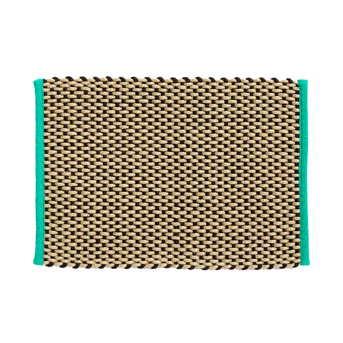Jute woven doormat in contrasting colour. Ideal for both outside and inside the home.