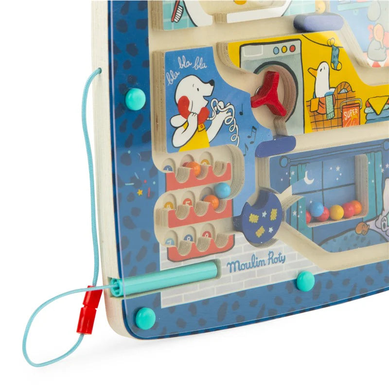 Usa el lápiz magnético para mover los elementos magnéticos a través del laberinto y ayudar a las canicas de colores a encontrar su camino. Este laberinto es ideal para aprender a contar y descubrir los colores mientras te diviertes con Puce & Pilou. Puce & Pilou de Moulin Roty es una colección llena de alegría y colores vibrantes que evocan la estética de los 90. Cuenta la historia de dos amigos caninos, Puce y Pilou, a quienes les encanta pasear por la ciudad y patinar con sus amigos.
