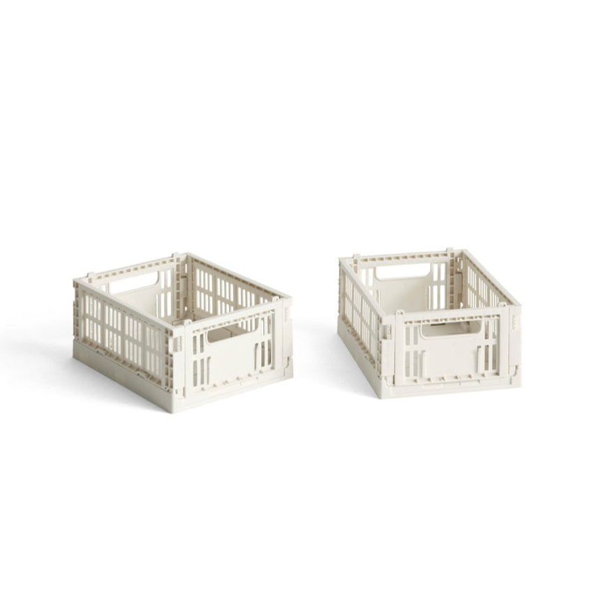 HAY Colour Crate Mini es una serie de cajas de almacenamiento coloridas con un diseño perforado distintivo. Fabricadas con residuos plásticos posconsumo 100 % reciclados en el tamaño más pequeño disponible en la colección Colour Crate, las cajas mini caben dentro de las cajas más grandes y se pueden apilar unas sobre otras. Las cajas multifuncionales son adecuadas para almacenar y organizar una amplia gama de artículos más pequeños en estantes, mesas o dentro de armarios.