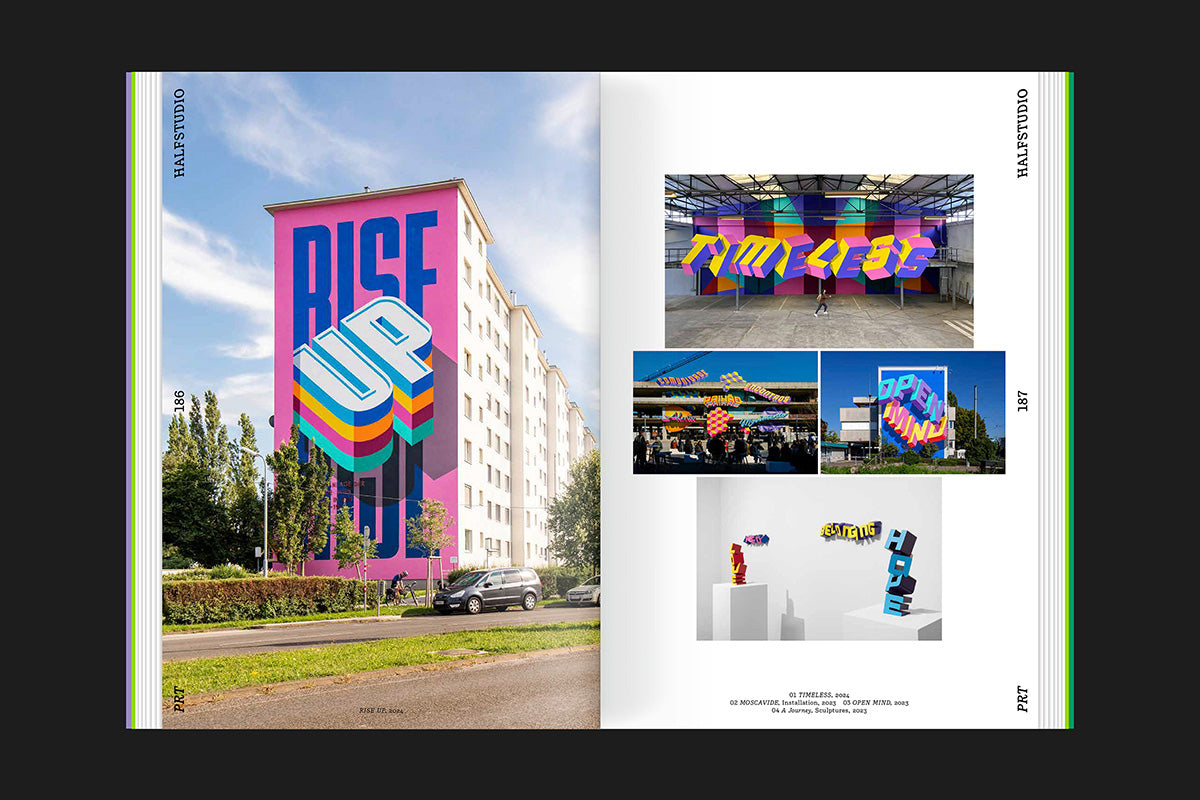 El libro está organizado en secciones claramente definidas para mostrar todo el espectro del lettering contemporáneo:
