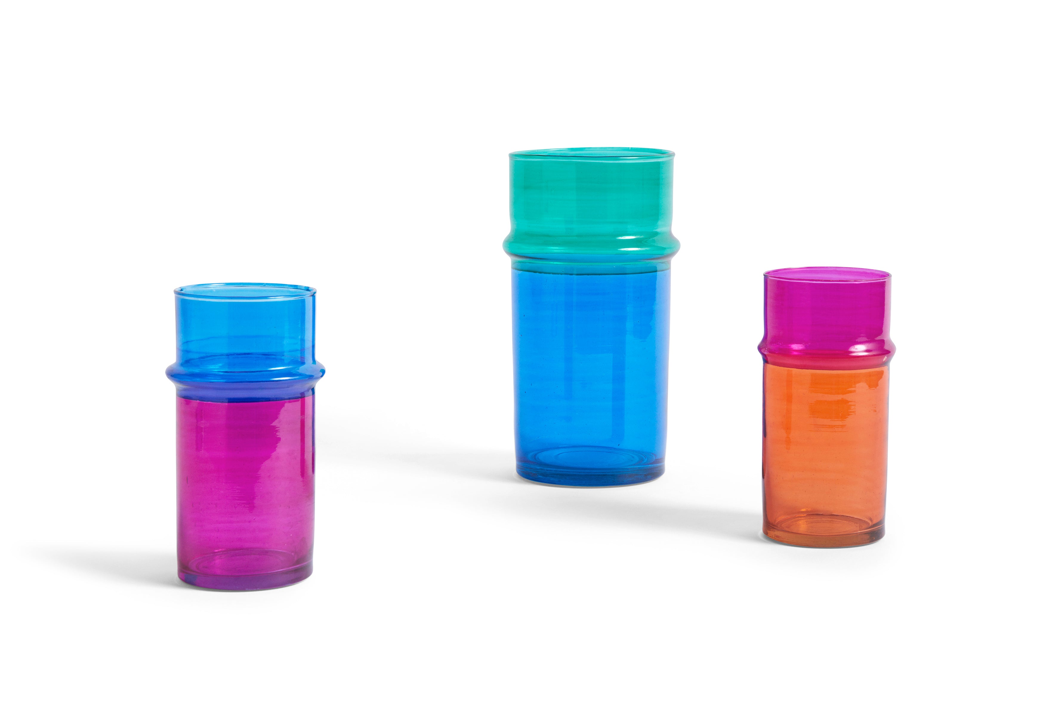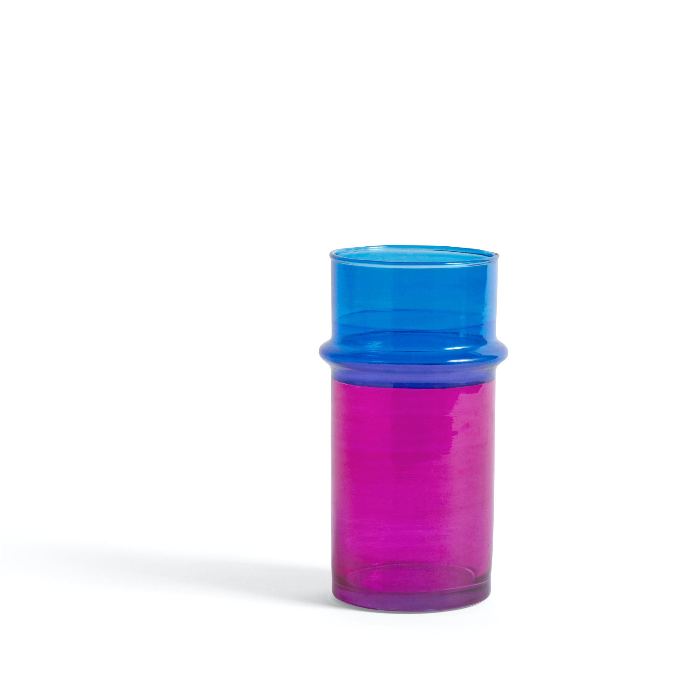 Hand-blown in Morocco, these painted glass vases are an easy way to add a pop of color to a room. Made from recycled glass.