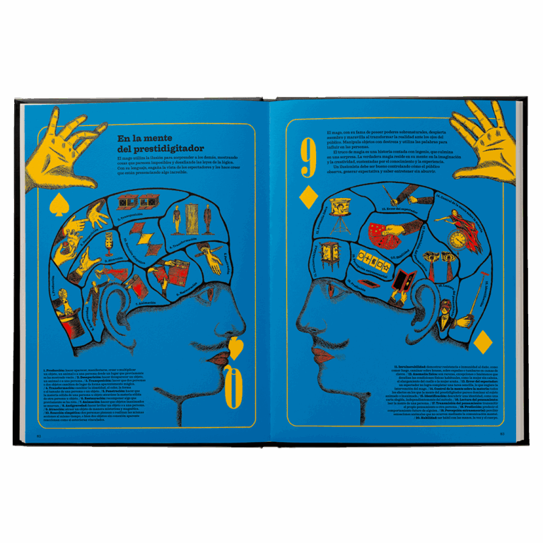 La magia siempre ha fascinado al ser humano, uniendo el deseo de explicar lo inexplicable con la voluntad de asombrar, engañar la mente y maravillar al público, dando lugar a una auténtica forma de arte. Desde los sacerdotes y hechiceros hasta los ilusionistas actuales, la ilusión ha formado siempre parte de nuestra historia, combinando habilidad, ingenio y destreza para producir efectos espectaculares. El libro se divide en tres capítulos: empieza con la historia de la magia, sigue con una introducción de cómo los magos han sido capaces de engañar la mente y termina con un detallado inventario ilustrado de los objetos que han intervenido en los trucos a lo largo de la historia.