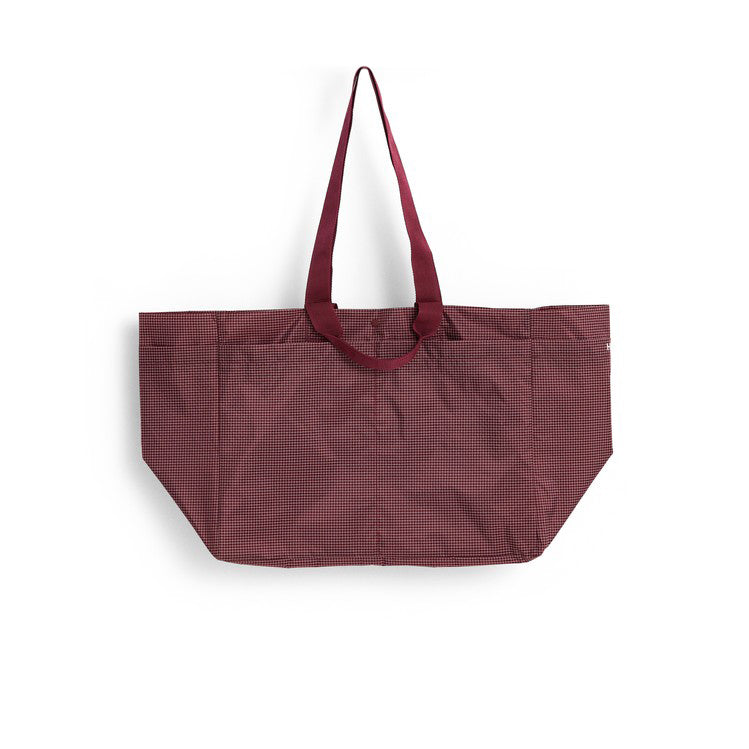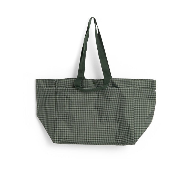 Combining minimalist design with everyday practicality, the Grid Weekend bag is a versatile bag for daily use and travel. Made from a durable blend of 79% recycled nylon and 21% polyester with a water-repellent finish, it features a subtle checkered pattern, a snap closure, long shoulder straps, two short handles, and multiple pockets for organization. Available in three sizes and colors, it's ideal for school, shopping, the gym, or weekend getaways.