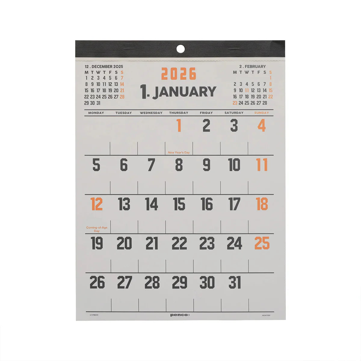 El Calendario 2026 original de Penco tiene un atractivo toque clásico. Disponible en dos tamaños, cada uno cuenta con un orificio para colgar, hojas perforadas y una calidad de papel que recuerda a una versión más resistente de la pulpa de periódico. Combina con un portapapeles o clip multiusos a juego (se vende por separado) para mayor estética y funcionalidad.