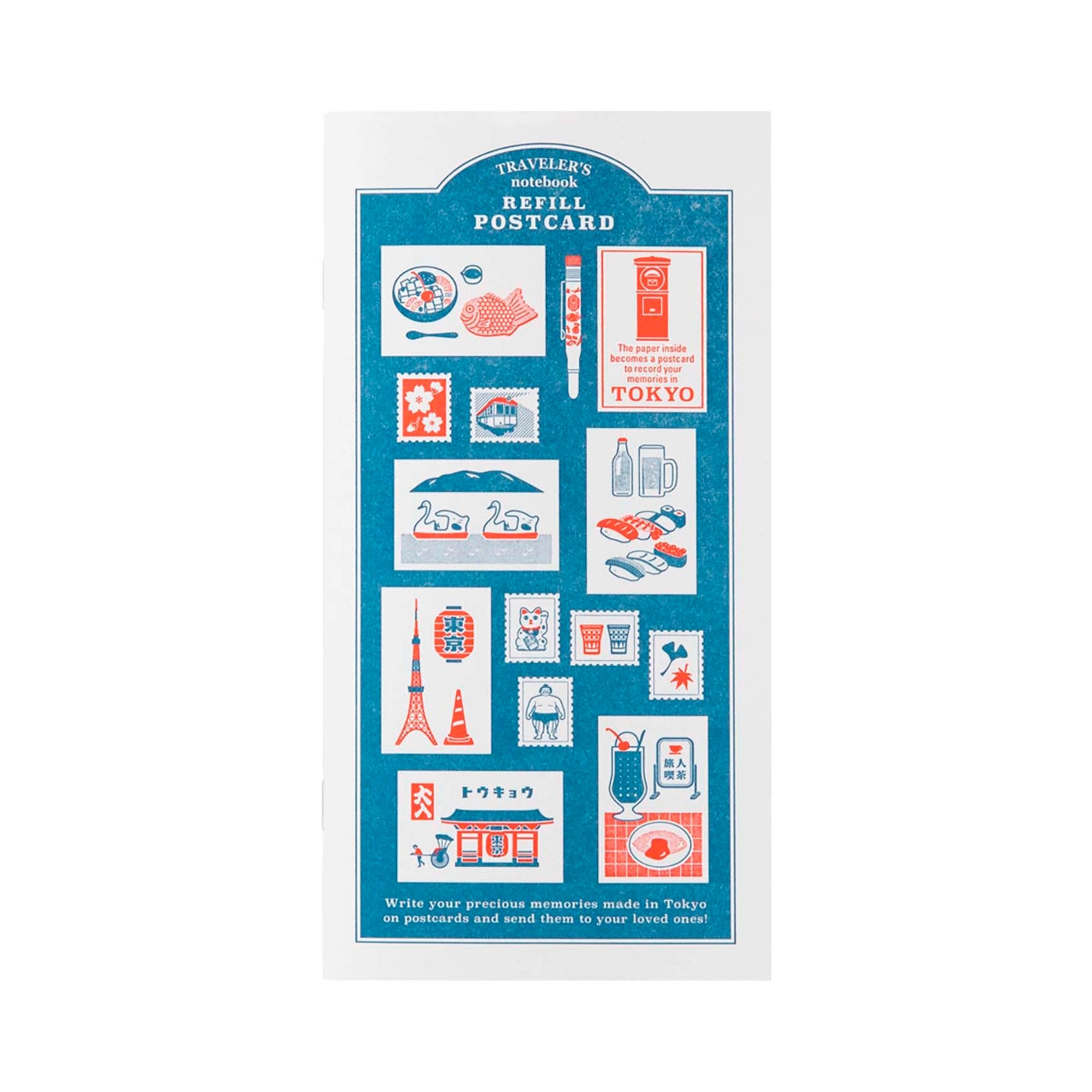 Todas las páginas de este cuaderno se pueden utilizar como postales si se cortan por la linea perforada. El papel está hecho de papel para acuarela, que es grueso, resistente al agua y tiene una buena reproducción del color. Puedes dibujar el paisaje que encontraste en tu viaje por Tokio, ponerle un sello o escribir tus recuerdos y enviárselo a otras personas. Las postales recortadas se pueden enviar como postales estándar con sellos adjuntos.
