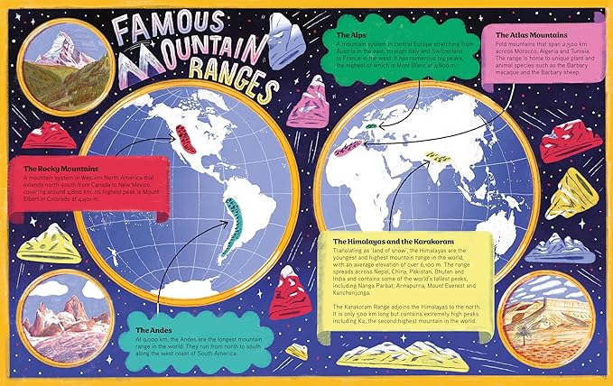 Este magnífico compendio explora ocho de las mayores montañas del mundo en todos sus continentes: Everest, Matterhorn, Chimborazo, Fuji, Kilimanjaro, Denali, Puncak Jaya y Vinson Massif. Descubra las fascinantes historias de la formación de las montañas, sus ecosistemas únicos, las mitologías de sus poblaciones locales y los relatos legendarios de su conquista. Cada capítulo incluye un desglose de la mejor ruta para llegar a la cumbre y los peligros que uno puede enfrentar en el camino.