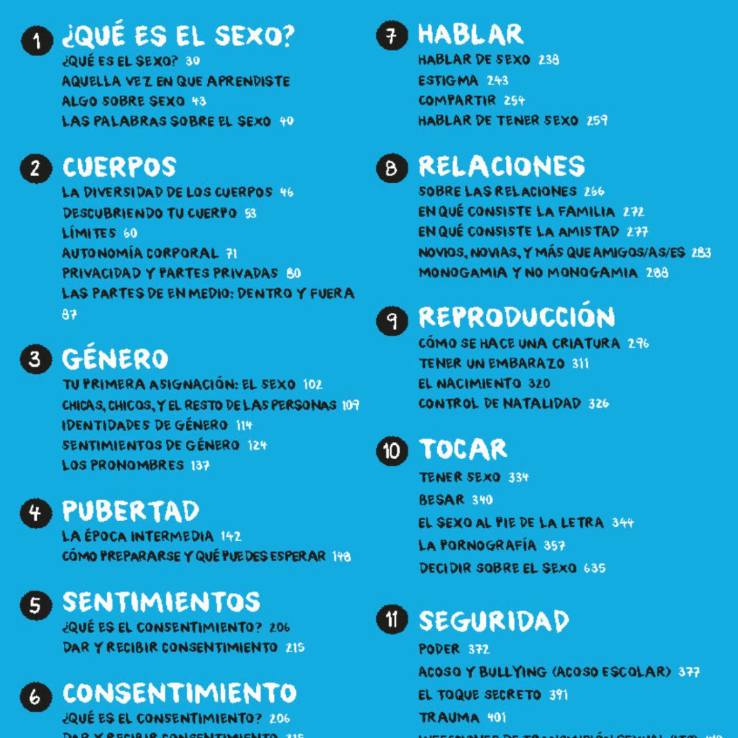 El libro se centra en las experiencias que tienen las personas jóvenes en relación a la presión y al placer, al riesgo y a la satisfacción, y a la confusión y al descubrimiento, e incluye capítulos sobre la autonomía corporal, el género, el consentimiento, la pornografía, la masturbación, el estigma, los límites, el acoso, el trauma, y la seguridad en nuestro mundo, saturado por los medios de comunicación. También tiene capítulos sobre la pubertad y la reproducción que incluyen los cuerpos y las experiencias trans, no binarias e intersexuales, y otras muchas cosas.