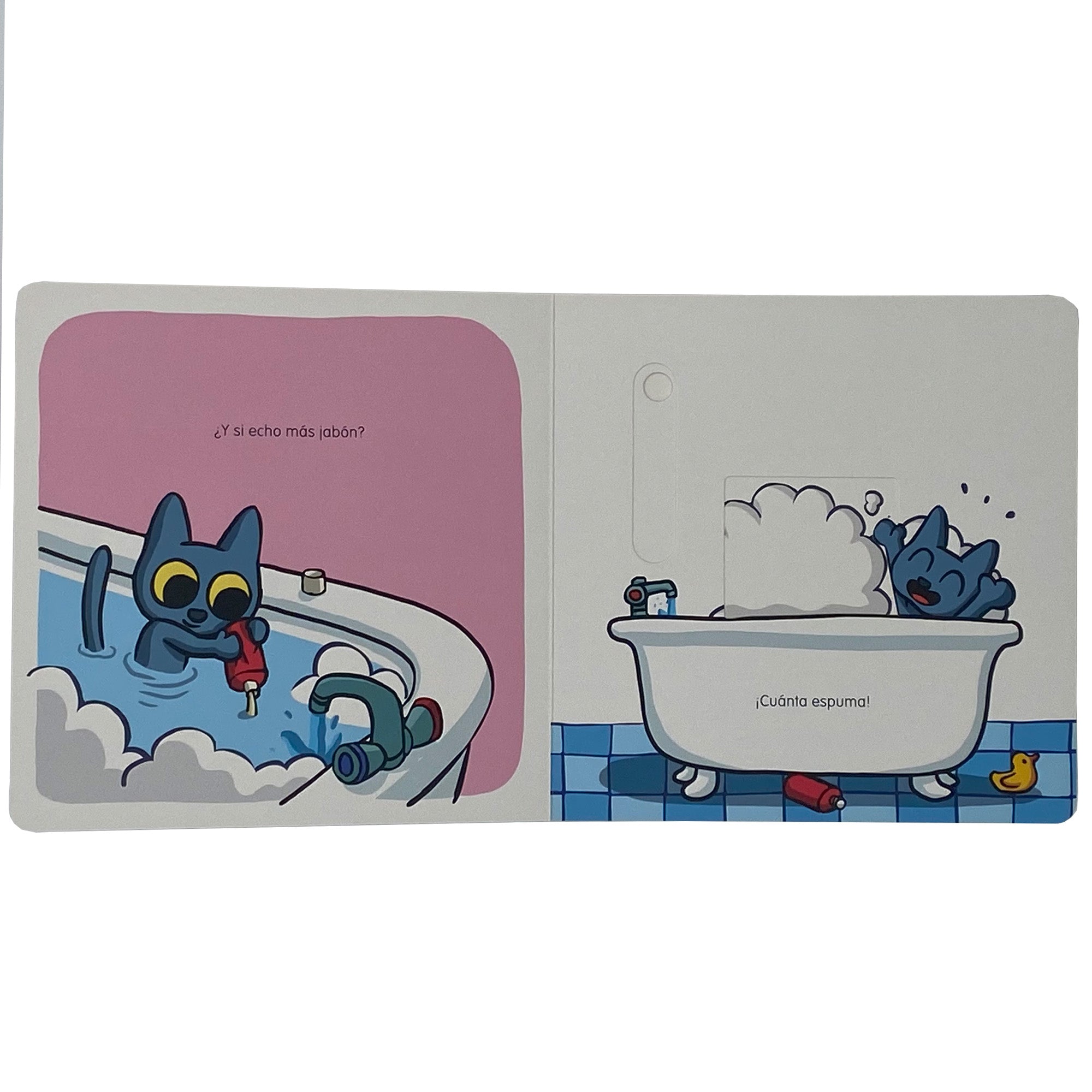 La hora del baño puede esconder tesoros inesperados. ¿Qué descubrirá Minino esta vez? Minino es un gato juguetón que mira el mundo con curiosidad. ¿Le acompañas? Un libro con mecanismos móviles que nos descubre la magia de los pequeños momentos.