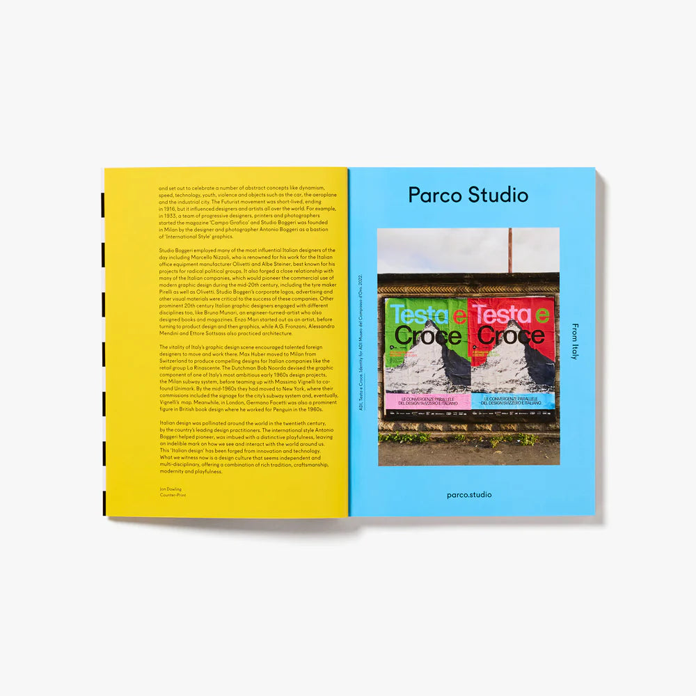 A celebration of Italy's creativity, compiled and published by Counter-Print. Featuring 18 creatives and their work, including: Parco Studio, CRSL, Matteo Vandelli, Maxim Dosca, BRH+, Cabaret Typographie, La Tigre, Happycentro, Multi Form, Atto, CamuffoLab, Olimpia Zagnoli, Tassinari/Vetta, Federico Barbon, Mauro Bubbico, Multiplo, Eremo and Camilla Falsini.
