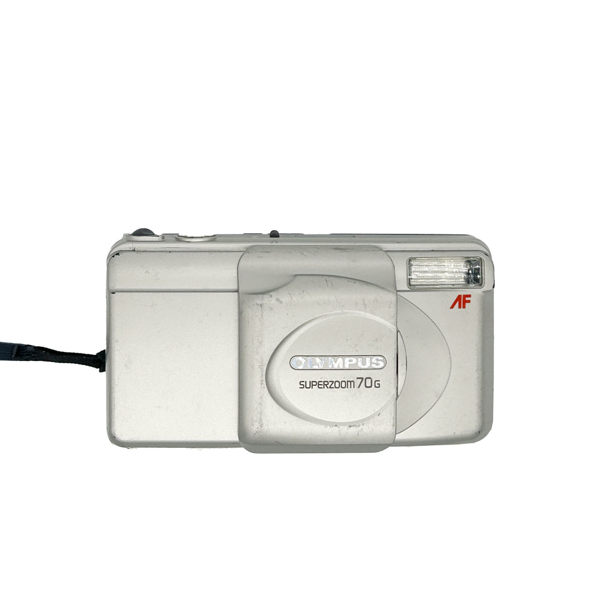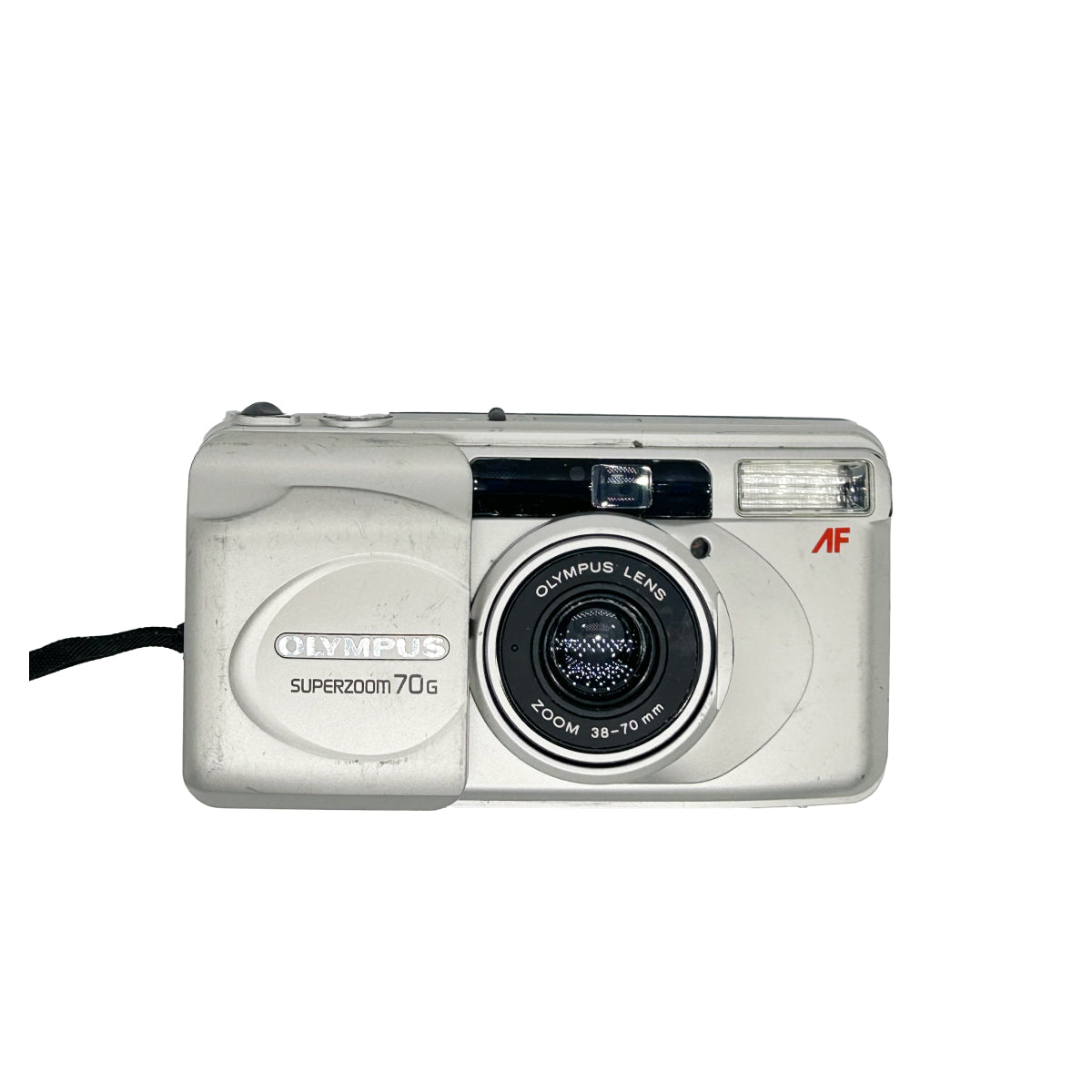 La Olympus Superzoom 70G es una cámara analógica que combina estilo y funcionalidad en un cuerpo compacto con curvas elegantes. Lo que la hace especial es su objetivo zoom 38-70mm con elementos de vidrio ED (Extra-low Dispersion) - ¡la misma tecnología de las lentes profesionales! Su sistema de enfoque predictivo es como tener un asistente fotográfico personal que adivina el movimiento de tus sujetos. Nos encanta su cuerpo ergonómico con ese grip texturizado que hace que fotografiar sea súper cómodo incluso durante horas.