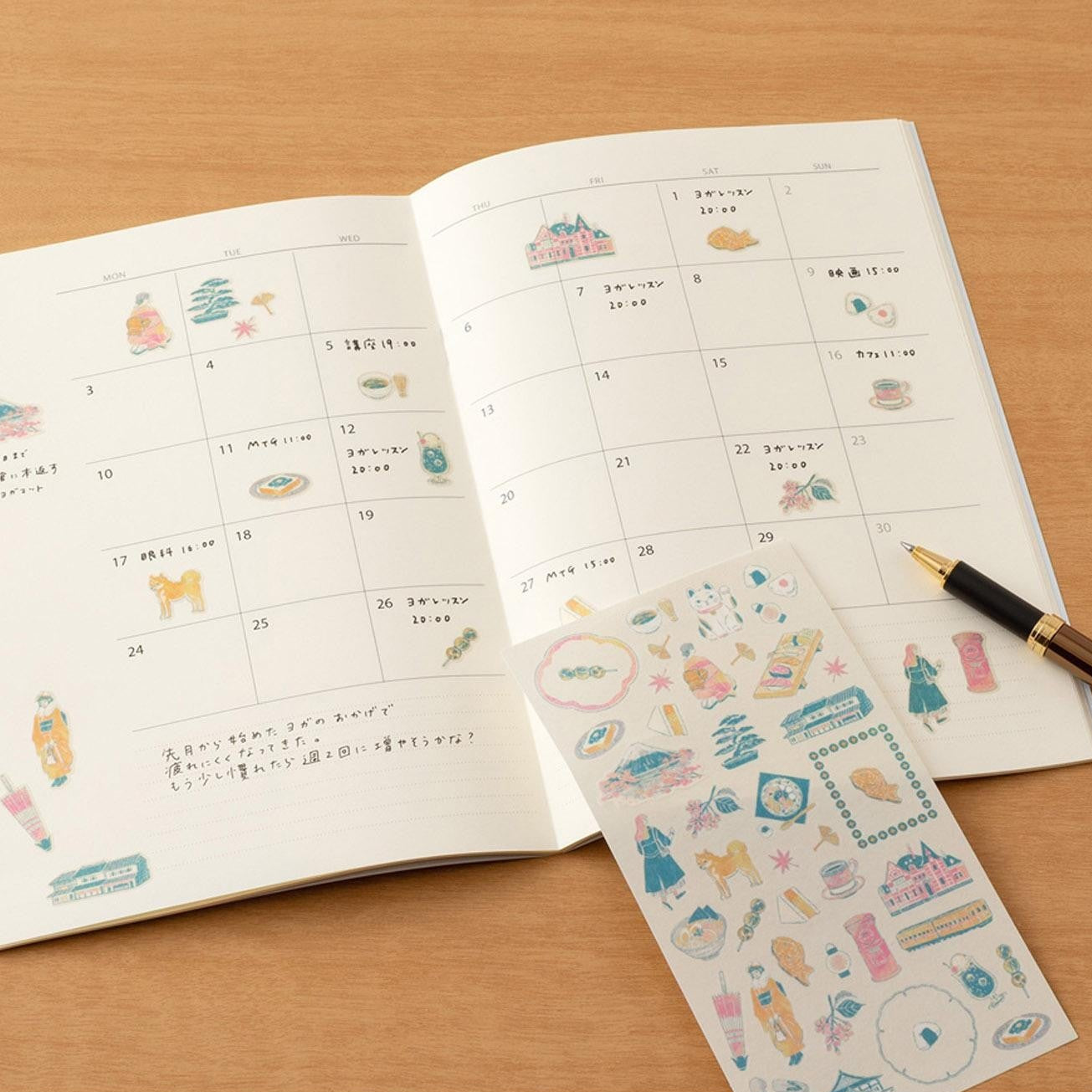 Estas pegatinas removibles son perfectas para añadir un toque personal a planificadores y cuadernos. Ilustradas por Yuuka Takamaru, cada diseño se inspira en la cultura y el encanto únicos de varios países de Europa y Asia.