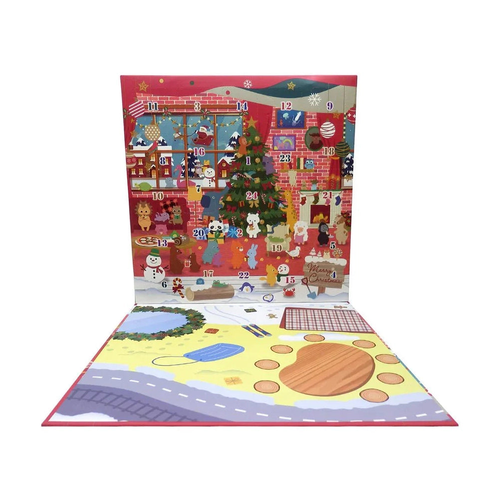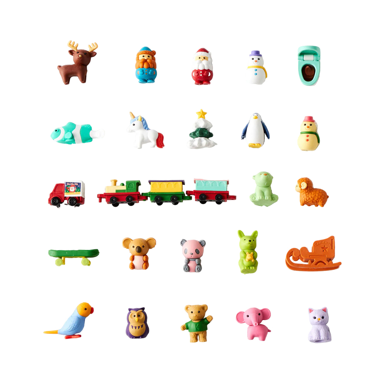 Descubre un Calendario de Adviento único. El de Iwako trae una goma de borrar desmontable tras cada puerta y una "hoja de juego" con diseño de picnic navideño en la caja, perfecta para jugar con los borradores o lucirlos como una divertida decoración.