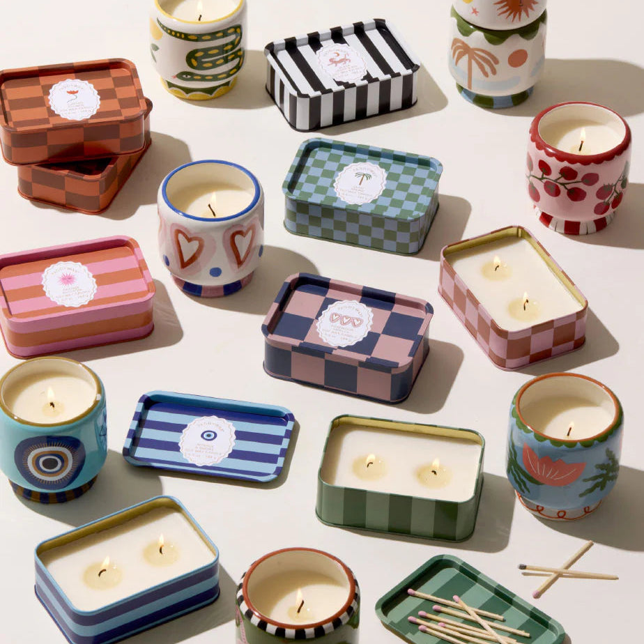 Audaz, colorida y deliciosamente retro, la colección A Dopo celebra las pausas con estilo. Estas latas con estampados brillantes y etiquetas removibles albergan fragancias ricas y en capas, y pueden reutilizarse como bandejas para guardar recuerdos o cajas decorativas.