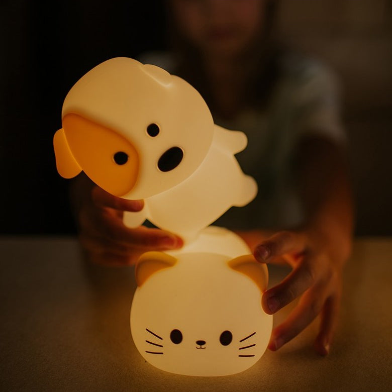 Descubre esta encantadora lámpara de noche: esta vez con forma de perro descansando, aportará un ambiente acogedor a cualquier espacio. Su suave carcasa de silicona la protege de roturas, y su minimalista color blanco la convierte en el complemento perfecto para la habitación de los más peques.