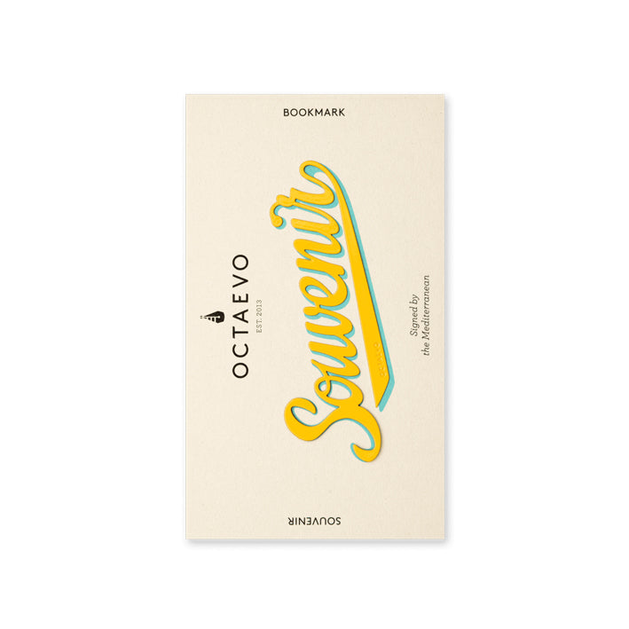 "On each journey, we collect tokens from unexplored places, reminders of lovely stories and loved ones; precious memories that stay with us forever." Shaped like the word Souvenir, this finely cut brass bookmark glides over a page like a silk glove. Finished with a subtle shimmer and presented on a postcard-sized screen-printed backing.