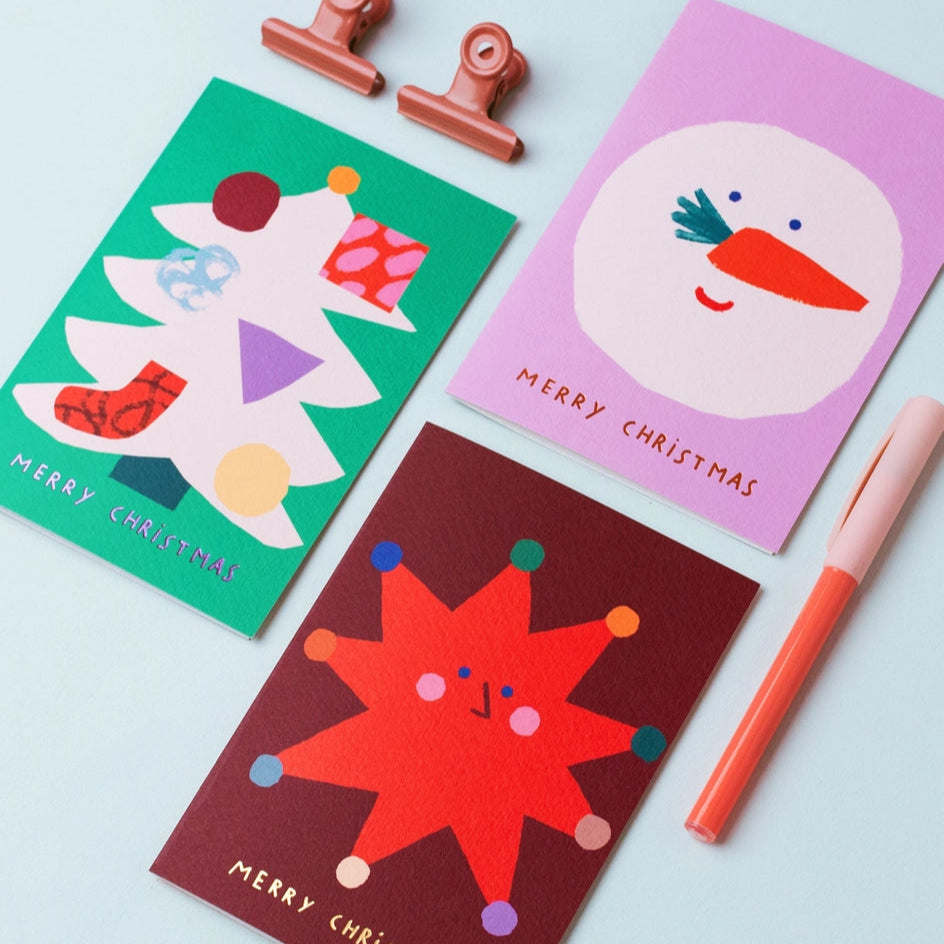 Tarjeta navideña con ilustracion de Matías Larraín. Está impresa en una tarjeta texturizada de 300 g/m² y viene con un sobre reciclado marrón. El tamaño de la tarjeta es A6.