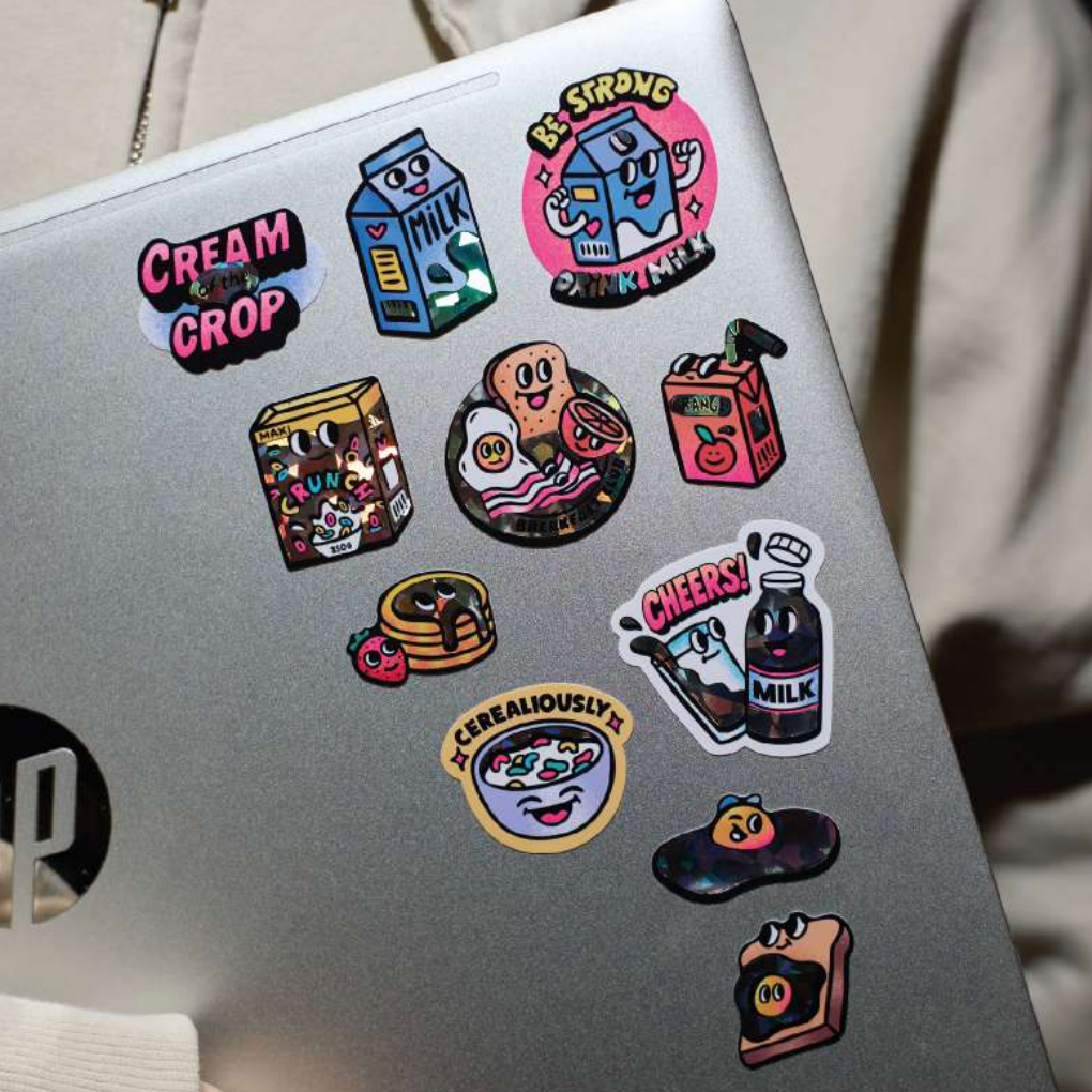 ¡Para los amantes de las pegatinas! Estas geniales láminas fluorescentes y holográficas, ultraduraderas e impermeables, se pegan y despegan sin dejar marcas.