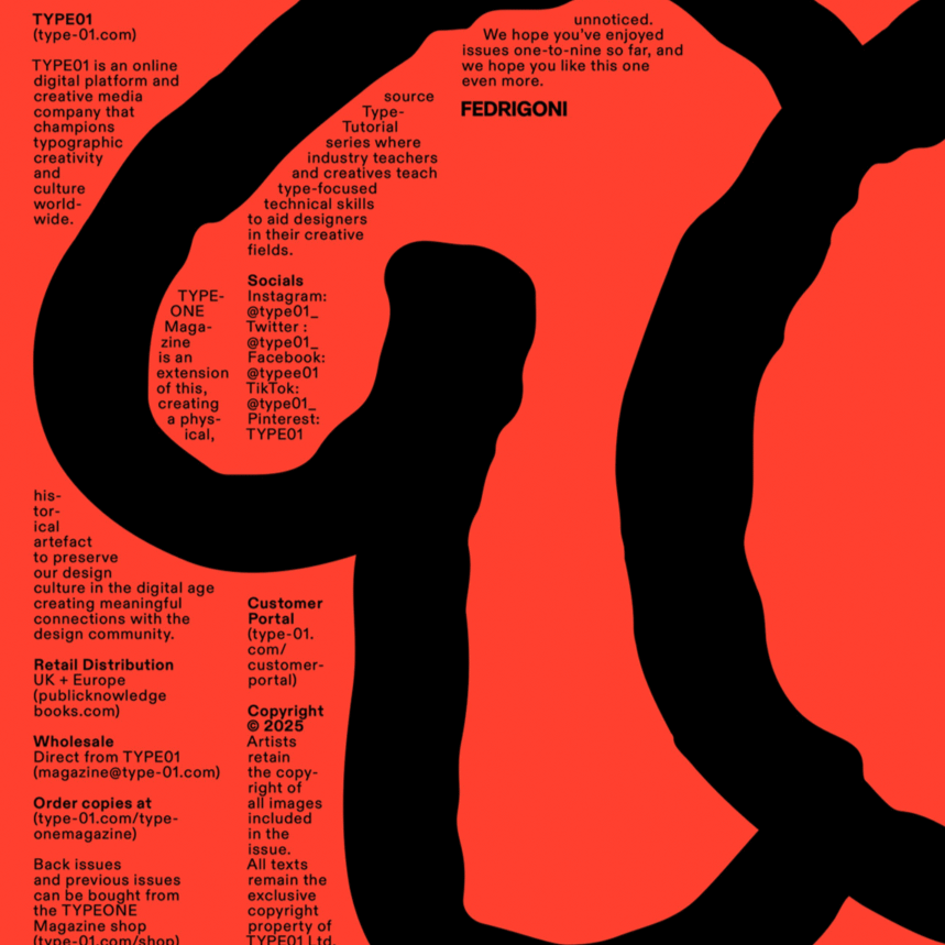 ¡Bienvenidos al número 10 de TYPEONE Magazine! Con 182 páginas (más del 30% de aumento), este número cuenta con la edición y el diseño de Studio Groundfloor, el estudio que ha dado forma a la imagen y el estilo de #typeonemag desde su creación. Para este número conmemorativo, han intervenido como editores para preguntarse no solo cómo se ve la tipografía, sino también qué significa en 2025.
