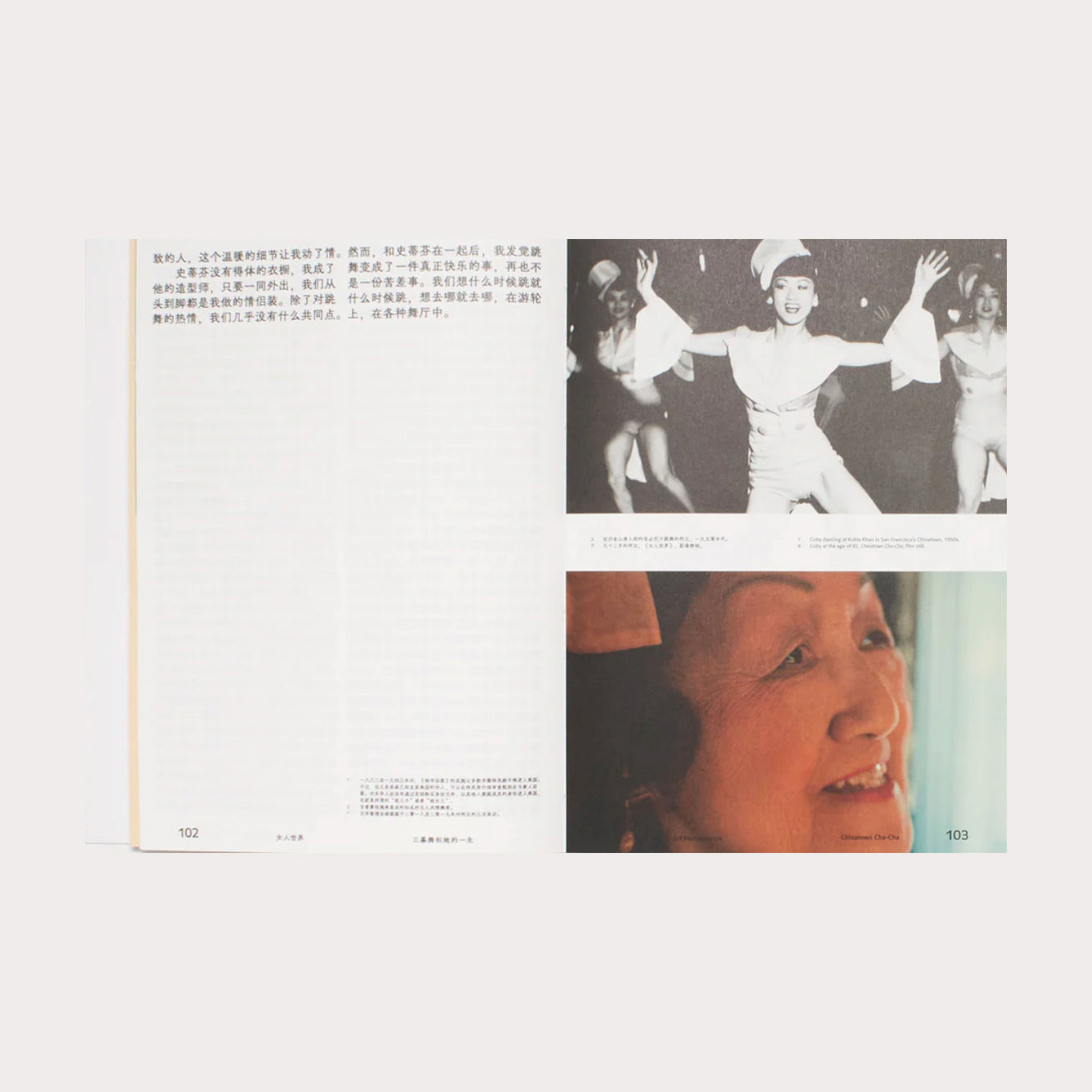 Dance in Herland examina la obra cinematográfica de la artista Luka Yuanyuan Yang, incluyendo su largometraje "Chinatown Cha-Cha" y cinco cortometrajes centrados en las comunidades chinas de la diáspora. El libro retoma la obra donde terminan las películas, sirviendo a la vez como reflexión y complemento, a la vez que crea una nueva narrativa. El libro reúne cientos de materiales de archivo de álbumes de fotos, historias orales únicas e invaluables, escritos creativos y entrevistas con académicos. Durante casi un año de edición, tuvimos ganas de revisitar el San Francisco y la Cuba del siglo XX, rastreando la historia a través de los neones del barrio chino y los ecos de la ópera cantonesa. Para los bailarines e intérpretes documentados en este libro, sus cuerpos actúan como archivos vivientes; sus recuerdos y emociones no expresadas pueden estar ocultos en sus pasos, dedos y miradas. Además, el dúo de diseñadores Studio Pianpian He y Max Harvey transformaron los libros en un contenedor de memoria colectiva a través de su diseño. Utilizaron papeles de varios colores para separar los diferentes orígenes de la historia oral. Los diseñadores capturaron delicadamente elementos visuales marcados por la época del archivo, infundiendo al libro un nuevo encanto basado en la estética del siglo pasado.