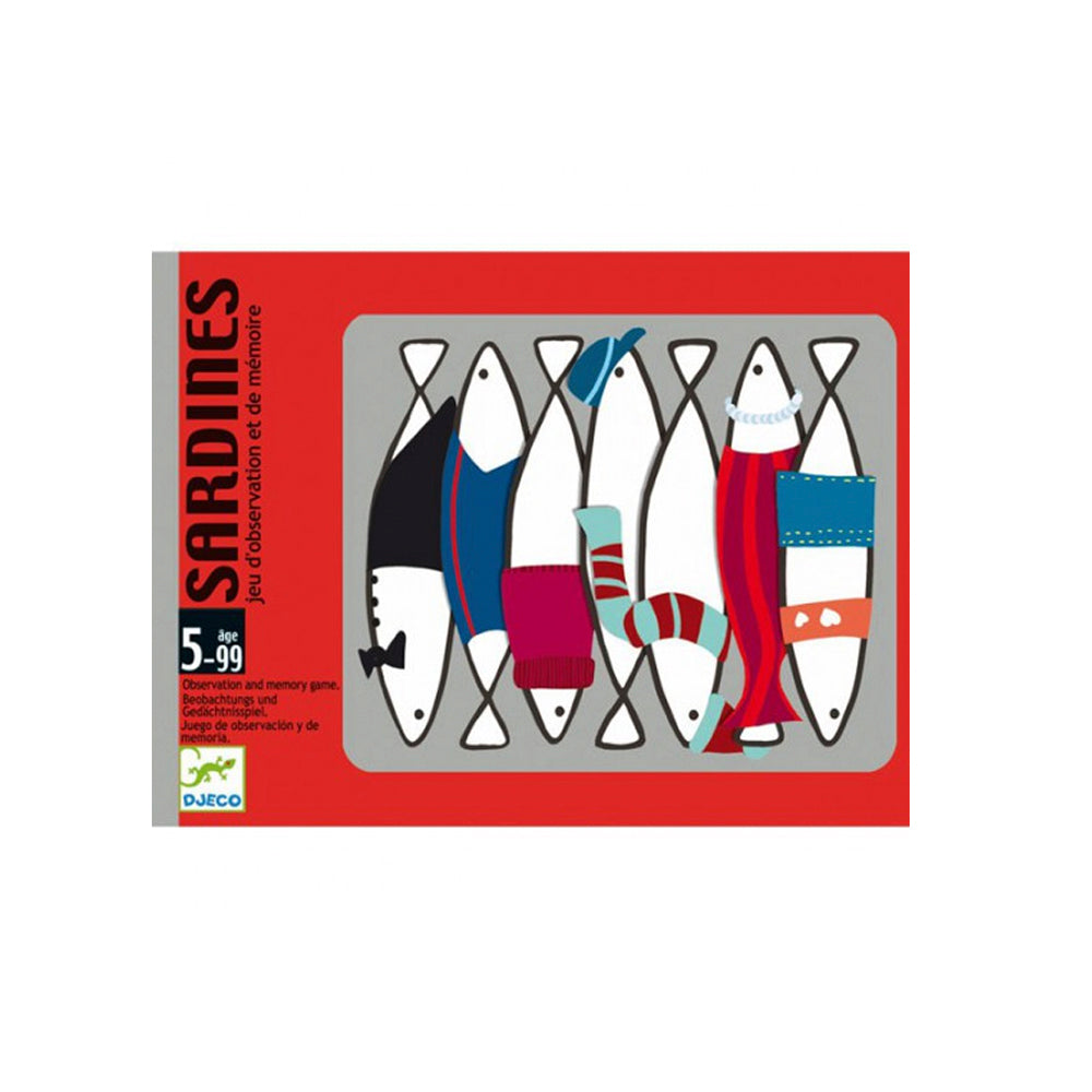 - Contiene 50 cartas (cartas grandes con lata de sardinas para memorizar y cartas pequeñas con sardinas individuales).