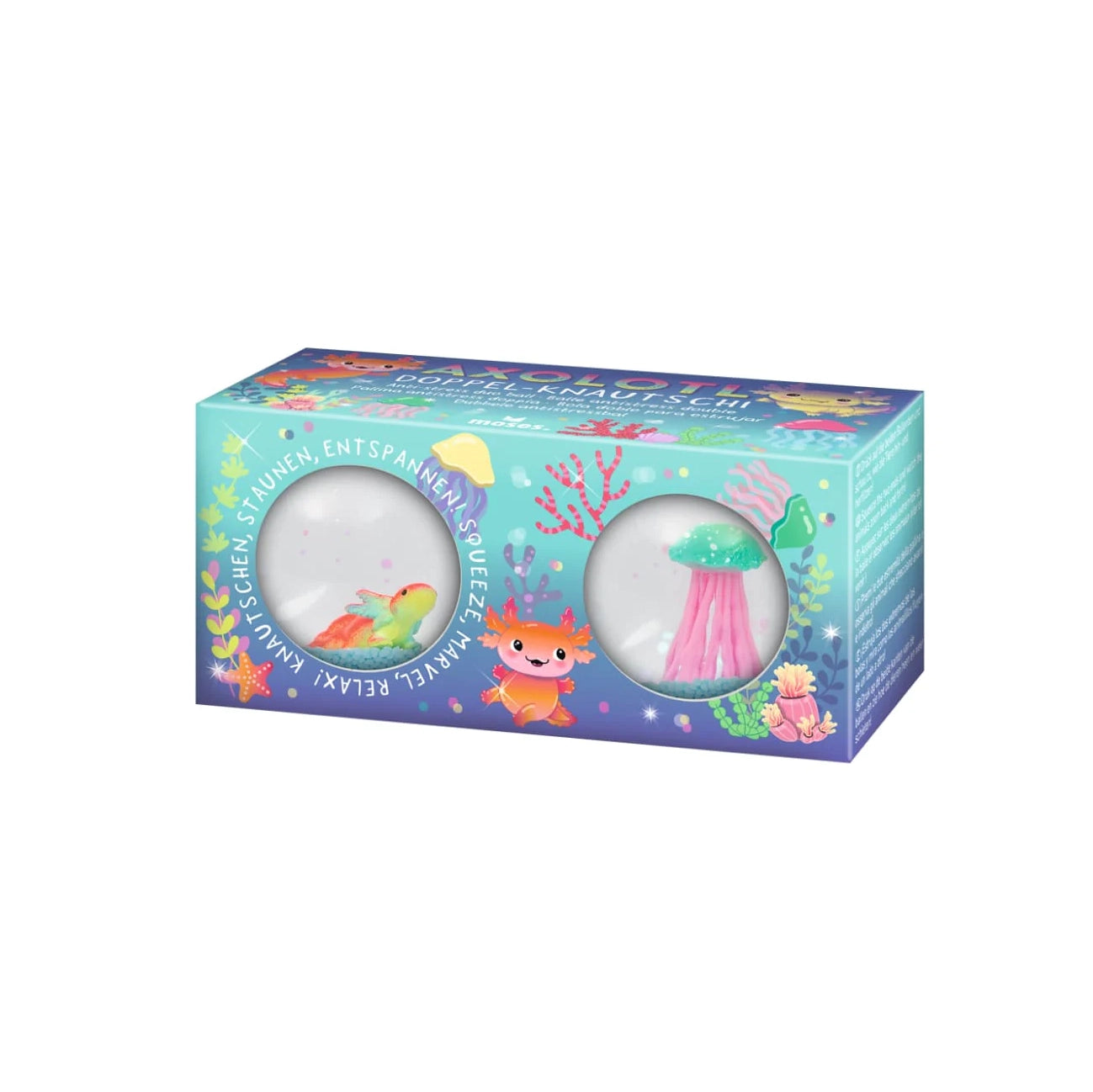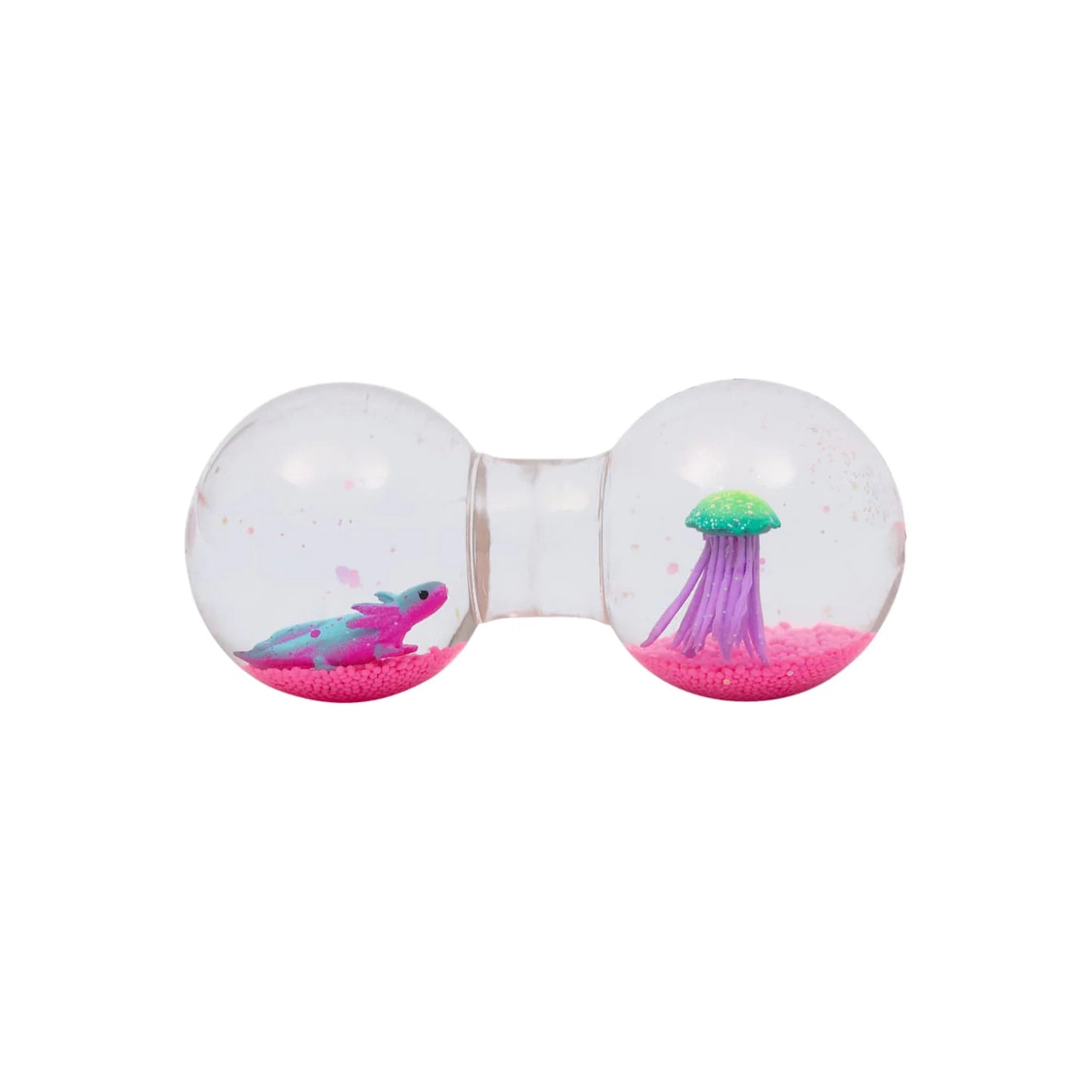 Bola antiestrés dúo. Al presionar los extremos de la bola, los animalitos se deslizan de un lado a otro para aliviar el estrés.