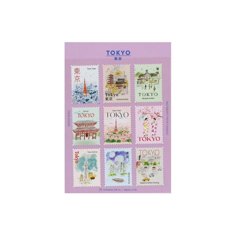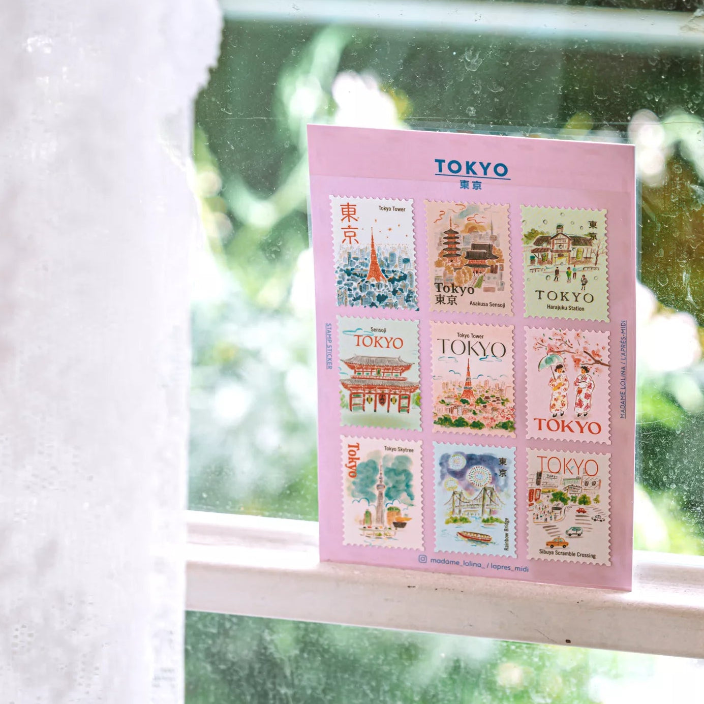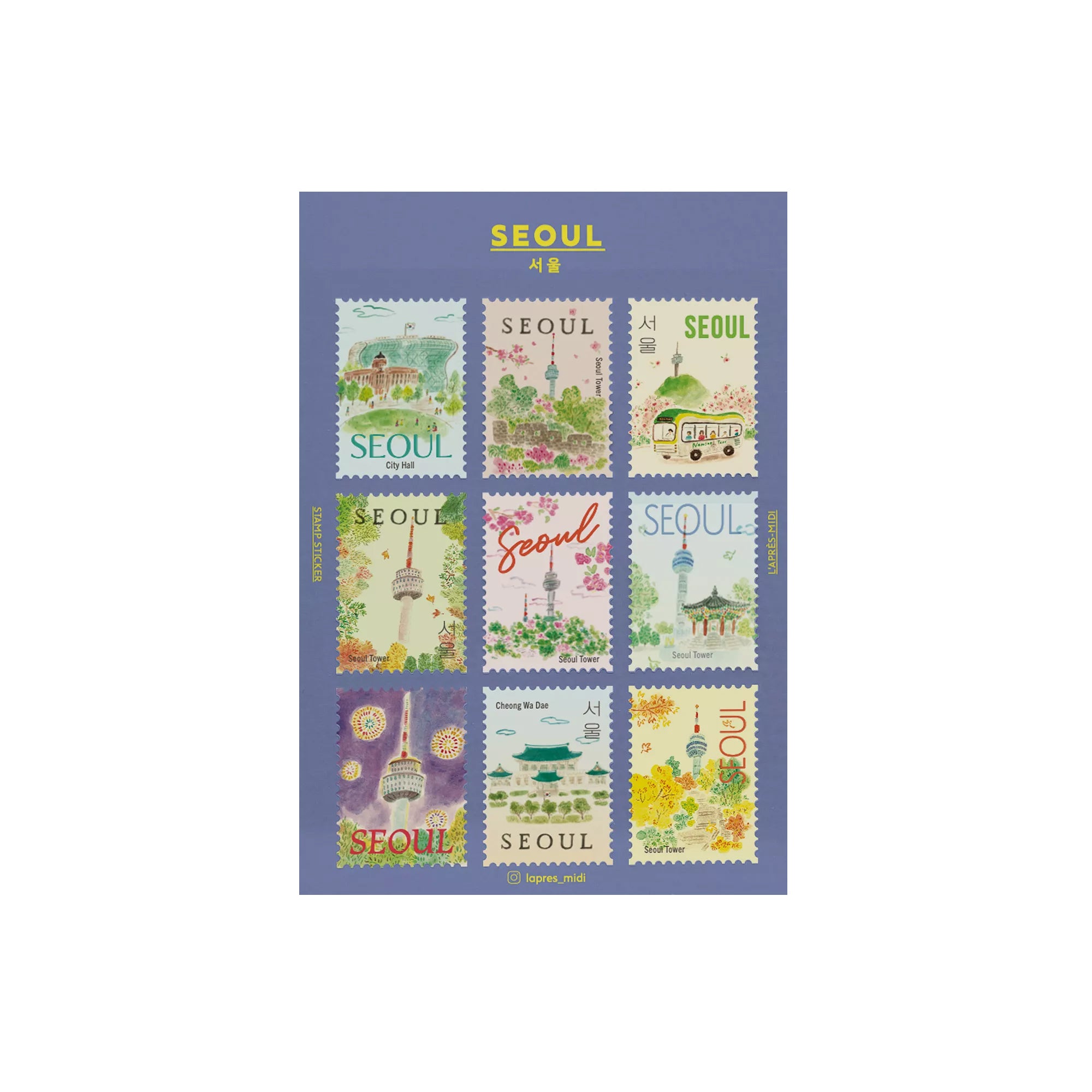 Set de 9 sellos adhesivos ilustrados por la artista coreana Wooran.