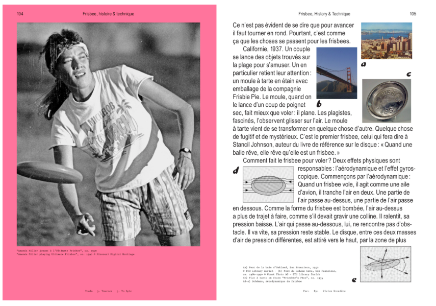 También exploramos otros ámbitos. Repasamos los conceptos básicos de física: fuerzas centrífugas, gravitatorias y giroscópicas, como las que permiten que un frisbee se deslice por el aire. Dondequiera que se encuentre energía en los movimientos caóticos de la naturaleza, los seres humanos han sabido capturarla con tecnologías que giran. Los molinos de viento, testimonio de siglos de ingenio, con sus aspas moviéndose con la más leve brisa, hoy han sido reemplazados por turbinas hidroeléctricas, a menudo gigantescas, que transforman la energía del agua en electricidad. Los giradiscos, esculturas cinéticas que hacen visible el viento mediante su rotación continua, reflejan nuestra necesidad de jugar con el movimiento: no solo de usarlo, sino también de admirarlo por lo que es: un fenómeno a la vez poderoso e hipnótico. Y entonces alzamos la vista y vemos más círculos. El ciclo de las estaciones se repite sin cesar. El sol sale, se pone y vuelve a salir. La luna crece, desaparece y renace. La forma y la naturaleza cíclica de estos ritmos naturales dieron origen a otro invento humano, que no ha dejado de girar desde entonces: ¡el tiempo! Desde que comenzamos a medirlo con relojes, el tiempo ha logrado la hazaña de girar mientras avanza constantemente. Podríamos pensar que girar significa repetir, estar condenados a volver al punto de partida. Pero no es así. La rotación es progreso. Cada giro nos lleva a un lugar nuevo. Cada ciclo, aunque parezca idéntico, es en realidad una variación, un nuevo paso. Es un bucle que nunca se cierra; en cualquier caso, así lo vemos en esta nueva edición de Tools. Hay algo vertiginoso en esta idea. Si todo gira, nada se detiene. El tiempo avanza, inexorable. En las manecillas de los relojes, los agujeros describen círculos sin pausa. Nos recuerda que todo pasará, que todo cambiará. Que nosotros también formamos parte de este gran movimiento: nuestra existencia es una revolución, un ciclo con un principio y un fin. Es como un disco donde la aguja sigue los surcos sin parar, y reproduce la misma melodía una y otra vez, pero nunca exactamente la misma canción. El cuerpo humano también puede girar. Los bailarines que giran —desafiando la gravedad, jugando con el equilibrio, creando movimiento con su propia inercia— conocen bien este vértigo. Tomemos el ejemplo del patinador que acelera su rotación acercando los brazos al cuerpo, o el bailarín de pole dance que usa la distribución de su peso para moverse alrededor del palo. Jugar con este vértigo y convertirlo en fuente de creación y expresión es una de las muchas cosas bellas que los humanos sabemos hacer. Incluso nuestros pensamientos siguen una lógica circular. En francés, se dice que una idea que surge, desaparece y luego vuelve en otra forma «gira en círculo» (literalmente) o «se repite constantemente» (figurativamente). Esto no tiene por qué ser algo negativo: volver a las mismas intuiciones e imágenes una y otra vez les permite madurar y alcanzar su forma ideal, como una bola de arcilla en el torno. Este número de la revista Tools es el más dinámico hasta la fecha. Es ágil, vibrante y dinámico; casi nos deja boquiabiertos. Está inspirado en la naturaleza, pero también en las manos humanas, que siempre han guiado y moldeado un mundo en constante movimiento.