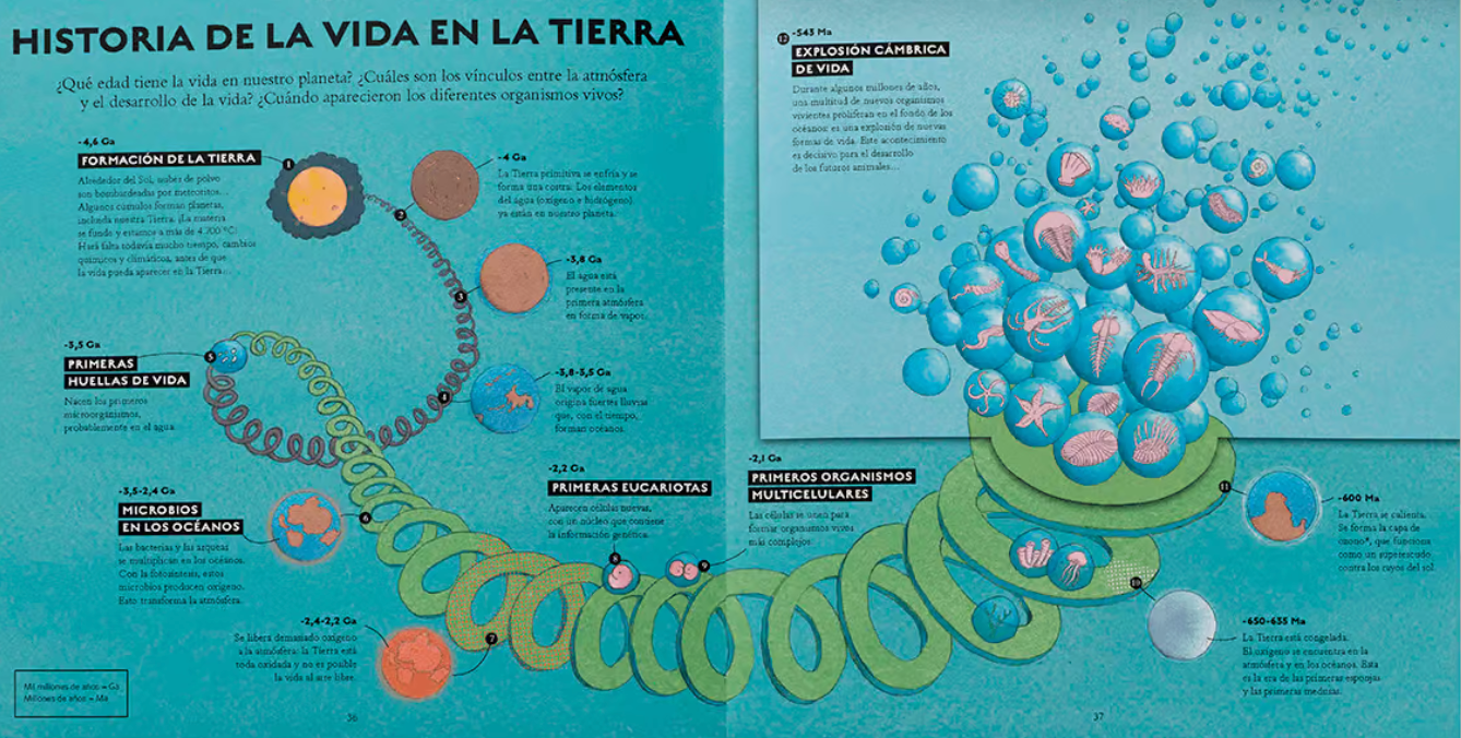 La vida está en todas partes… Solo hace falta observarla para maravillarse. ¿Qué es la vida? ¿De dónde viene y cómo se transmite? La vida está dentro de nosotros y a nuestro alrededor, misteriosa, a veces tan poderosa y otras tan frágil. El libro comienza con una divertida prueba: ¿está viva la hoja de un árbol? ¿Y una hoja de papel? ¿Y el pelo y las plumas? A continuación, nos sumerge en los orígenes de la vida según la religión y la ciencia, incluyendo el funcionamiento de las células, la reproducción en los seres humanos, los animales y la vida.
