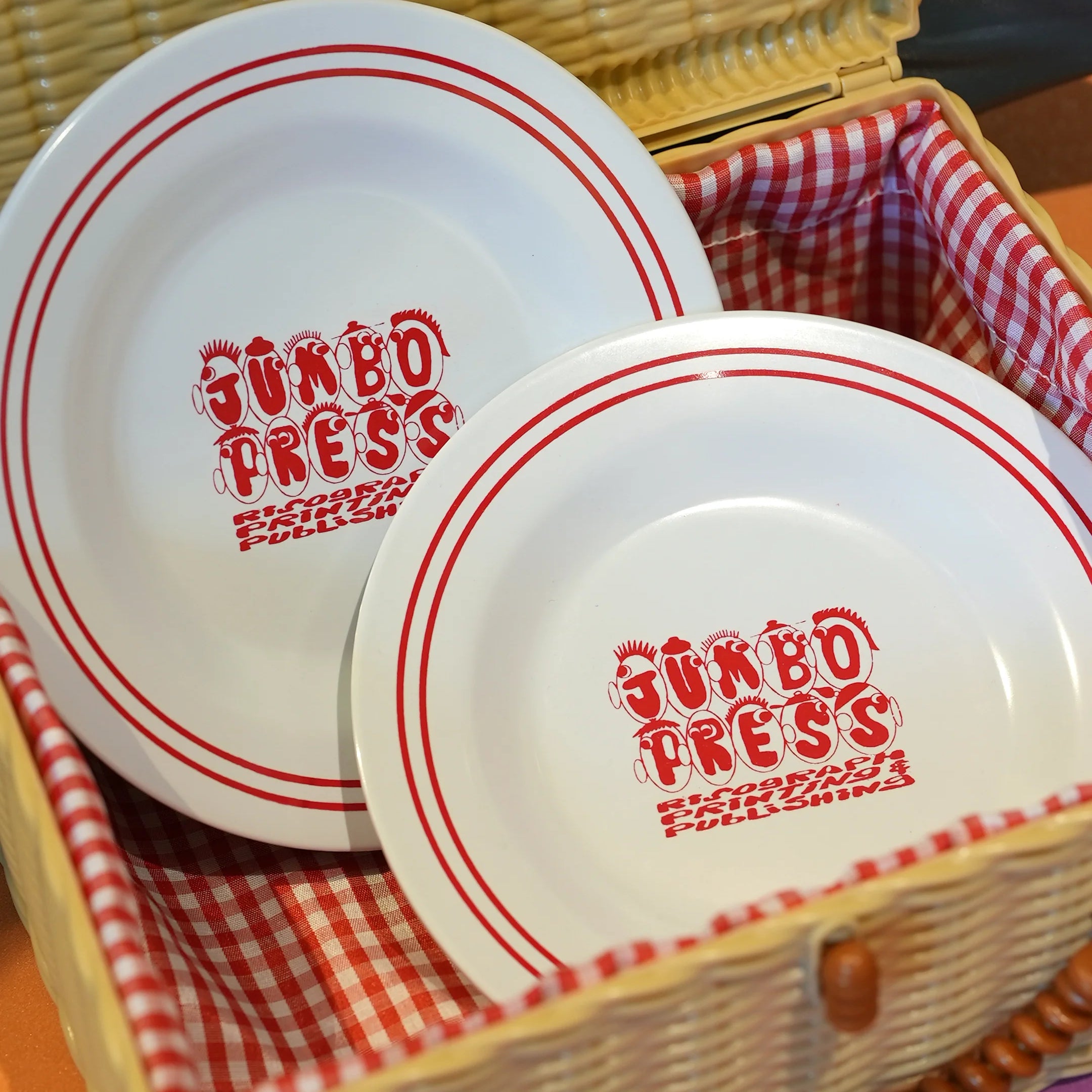 Colección especial de platos de melamina de la exposición de Jumbo Press, Riso Picnic en Singapur, en la Galería Heartware.
