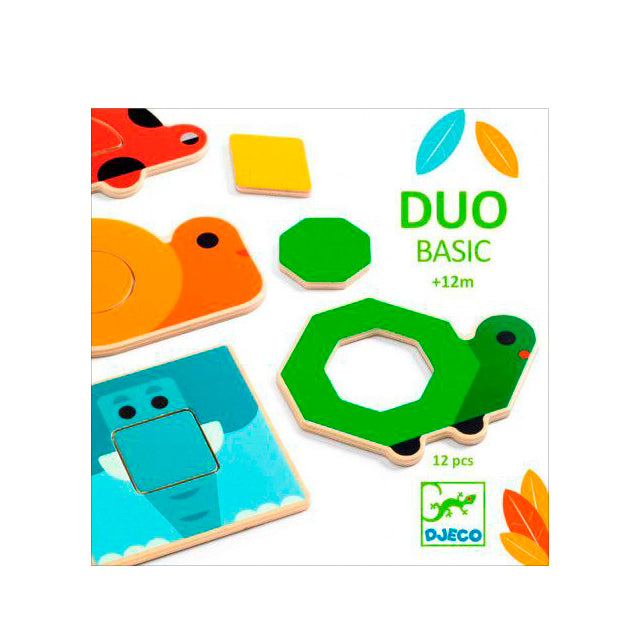Un primer puzzle de madera para que los niños conozcan las formas y colores a partir de los 12 meses.