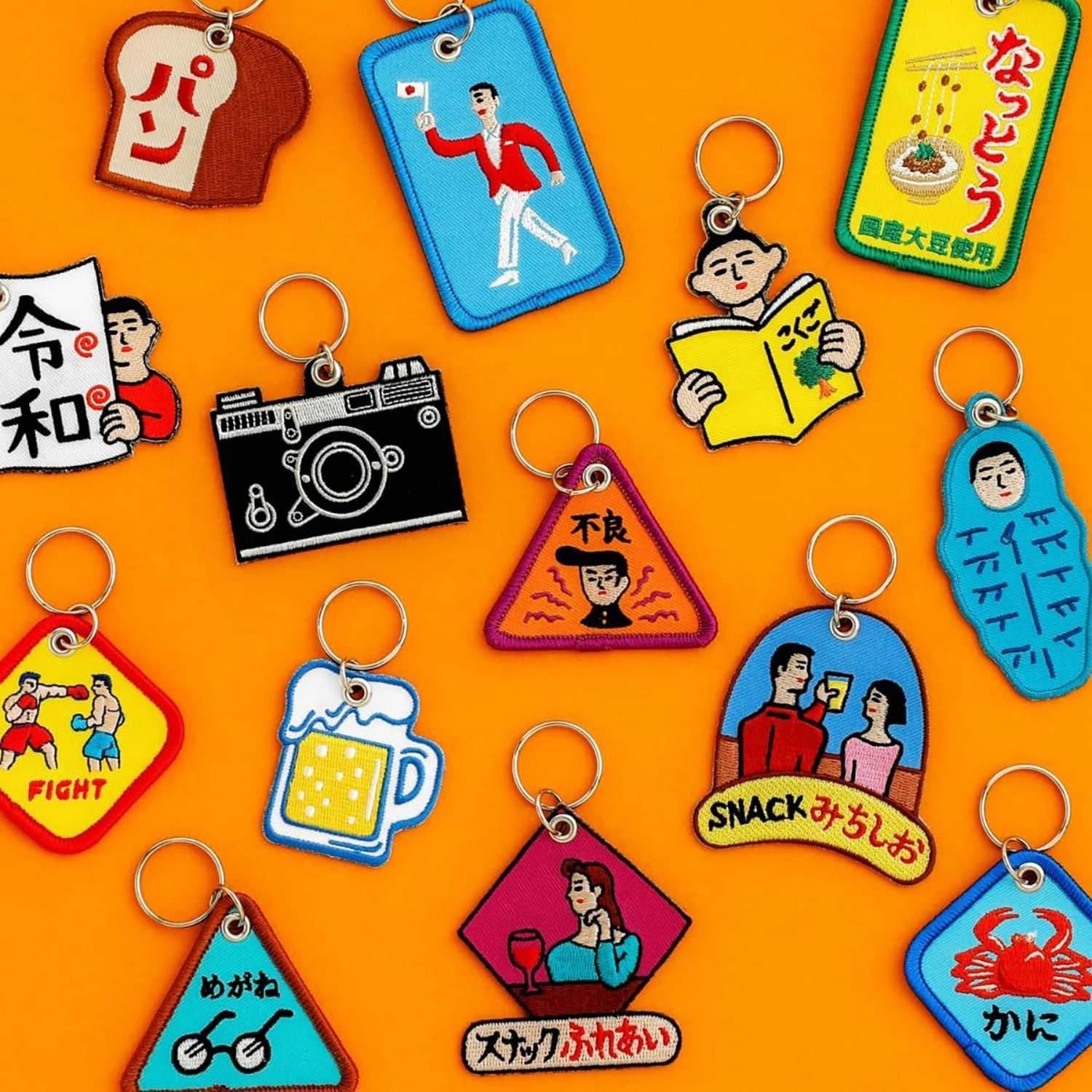 Estos llaveros bordado tienen un diseño retro y pop, con motivos familiares en gráficos coloridos. Es un artículo divertido que acentuará tu vida diaria y tiene el tamaño perfecto para usar como detalle en tu bolso o para llevar con tus llaves.