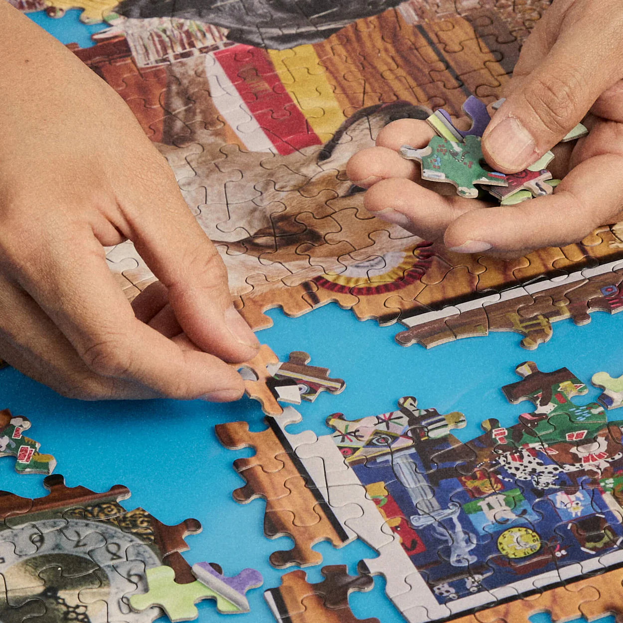 "Nos encantan las ilustraciones antiguas de cajas de rompecabezas, las copias tontas, las formas extrañas de los rompecabezas y, por supuesto, las imágenes interesantes. Realmente no hay nada como esa sensación de terminar un rompecabezas y pasar la mano sobre él, y luego tratar de levantarlo de la mesa en una sola pieza.
