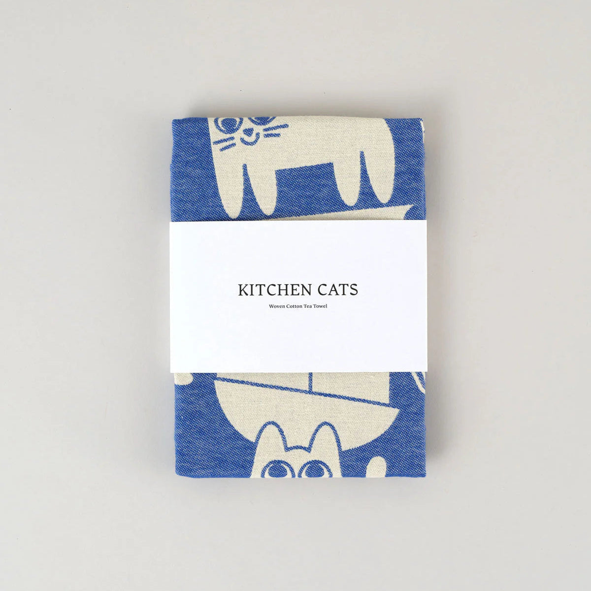Divertido y original, este diseño de Elliot Kruszynski se presenta en un colorido monocromo azul brillante. Confeccionada en algodón 100% tejido, la toalla luce una colección de gatos decididos a ser útiles en la cocina.