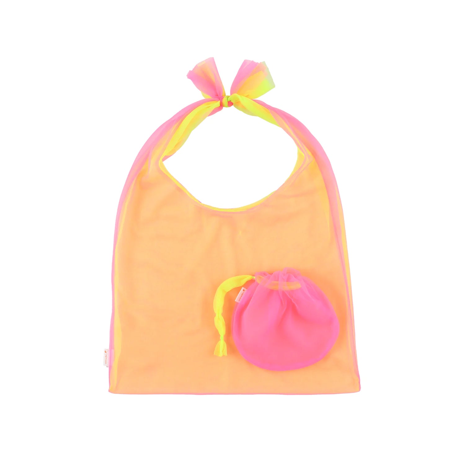 Cada bolso tiene dos colores lo que hace que puedas llevarlo por un lado o por el otro(es reversible). Y la superposición de los dos colores hace que se cree un nuevo color.