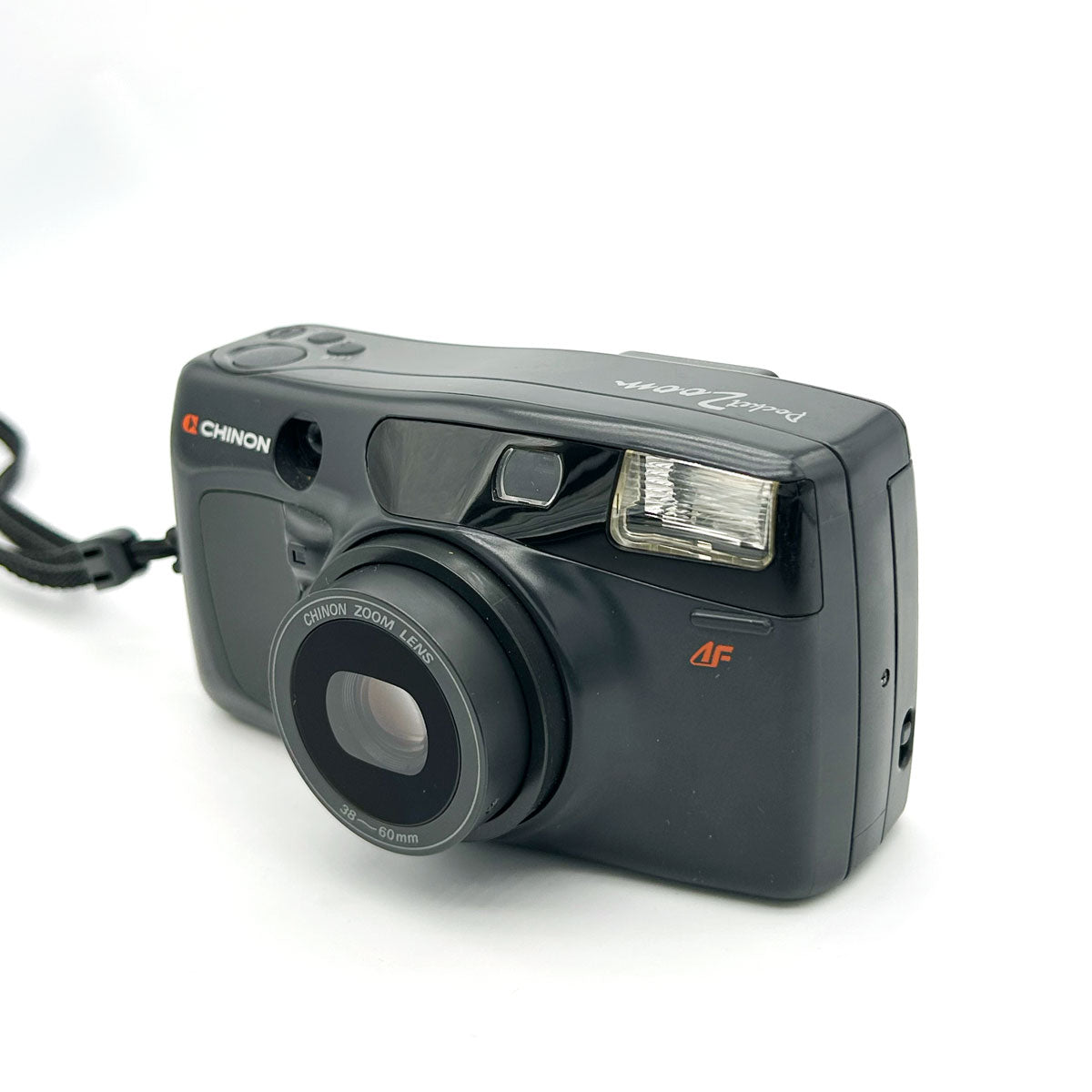 Pequeña por fuera, sorprendentemente capaz por dentro. La Chinon Pocket Zoom es una de esas joyas compactas que pasaron desapercibidas pero que dan resultados más que decentes. Tiene un zoom 38–60 mm que cubre desde escenas callejeras hasta retratos, con autofoco y flash automático para que solo tengas que encuadrar y disparar. Nos gusta porque es ligera, sencilla y perfecta para quien busca una cámara sin complicaciones pero con resultados auténticamente analógicos. Cabe en cualquier bolsillo y dispara como si no lo hiciera.
