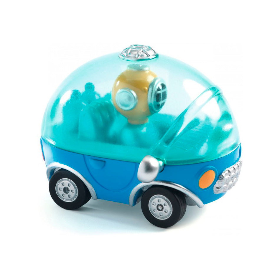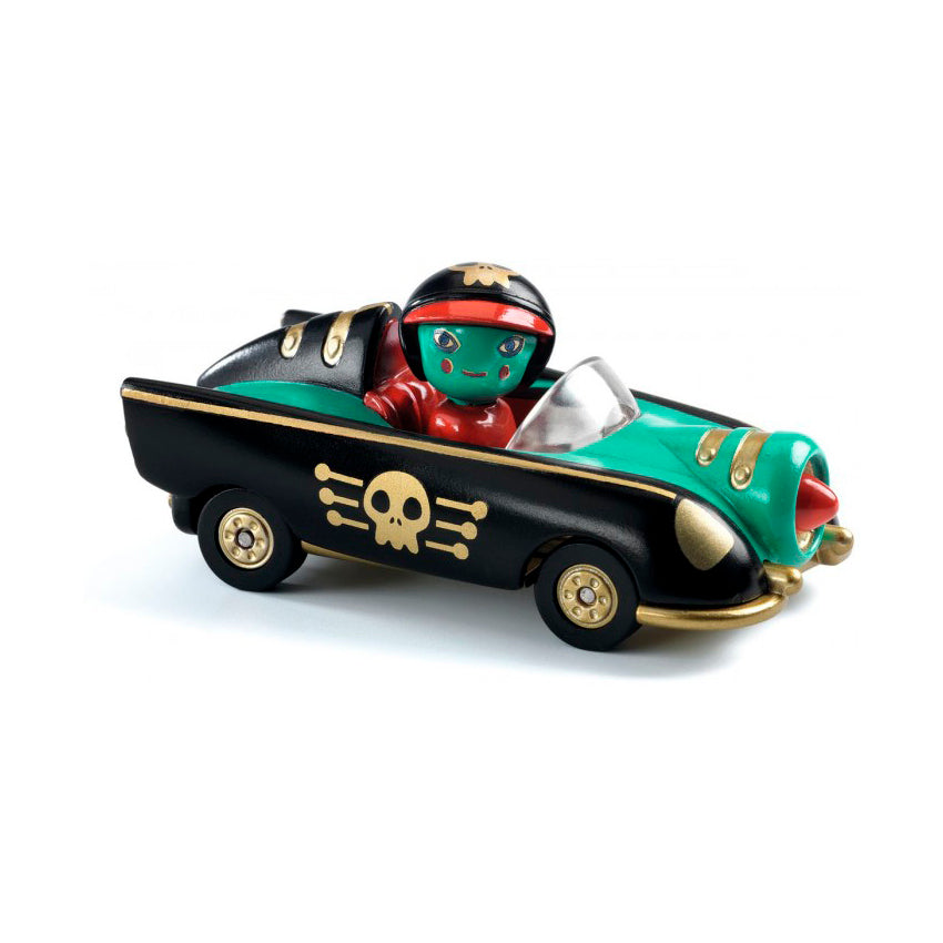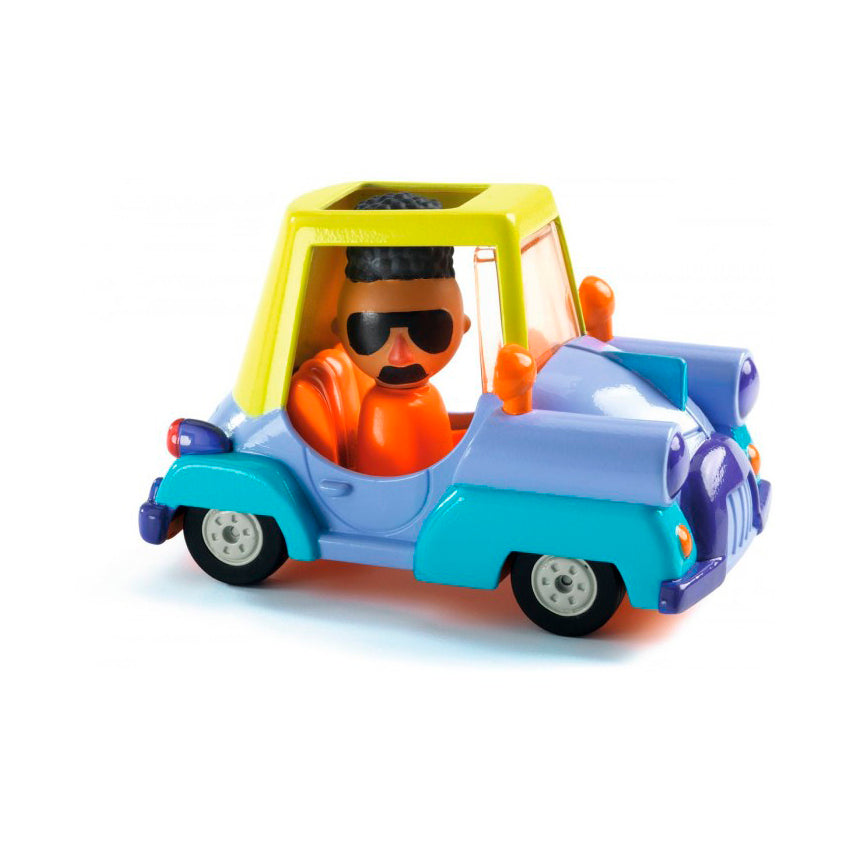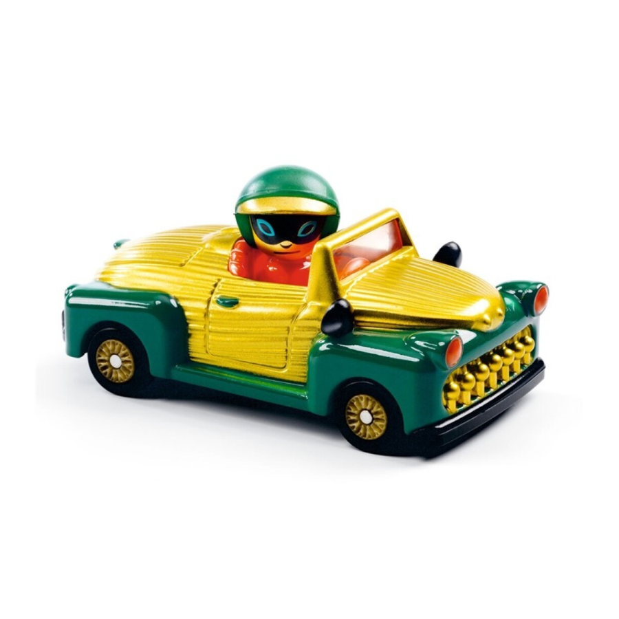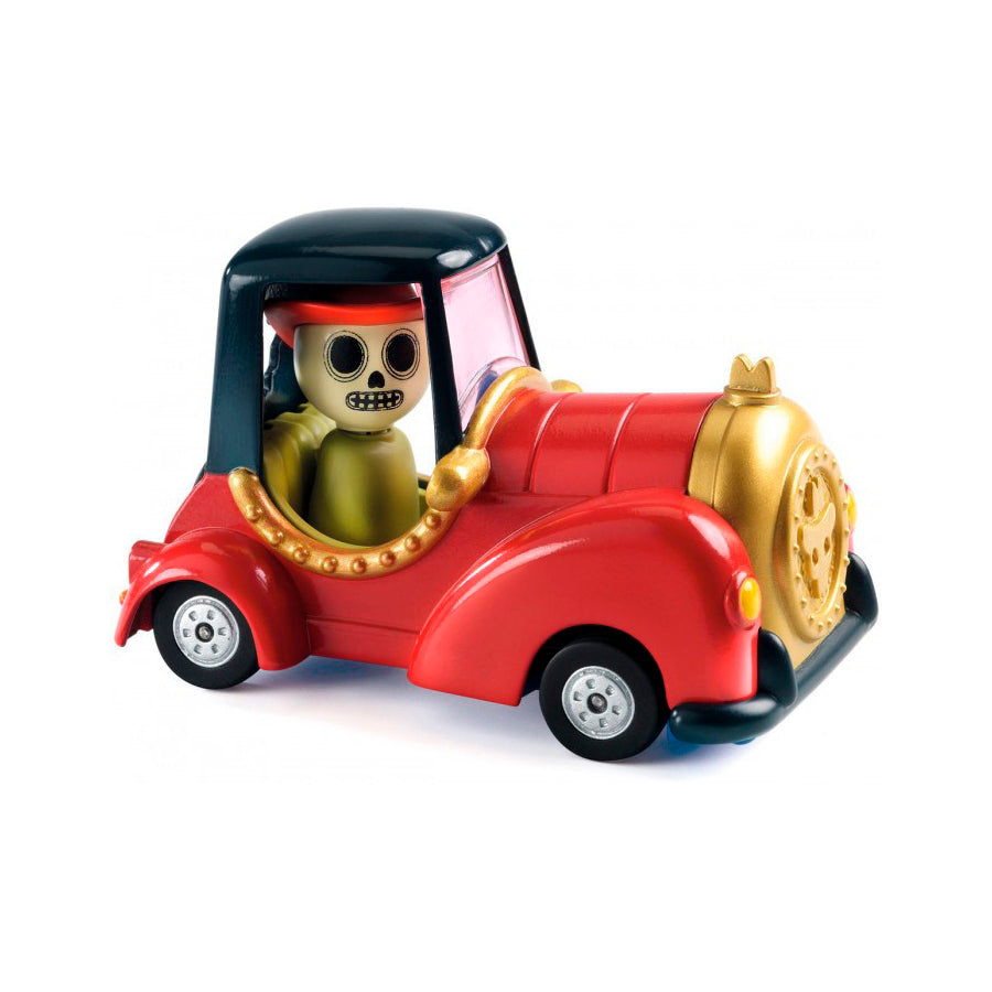 Sumérgete en la colección Crazy Motors de Djeco: coches metalicos a escala 1:43 con un toque retro y diseños desenfrenados. Steve Simpson ha creado personajes memorables como Piranha Kart, Motor Skull, Dingo Mobile o Hurry Police, cada uno con líneas atrevidas y colores vibrantes. Fabricados con precisión y acabados impecables, estos vehículos de juguete despiertan carreras épicas en la imaginación de niños de 3 a 10 años. Sus ruedas son de goma, tienen una suspensión independiente y la cabeza del piloto se gira. Ideales para jugar con ellos y para coleccionarlos.