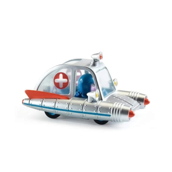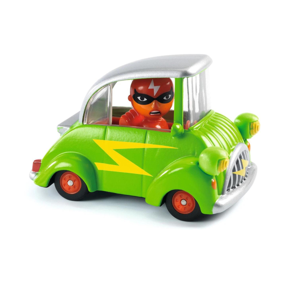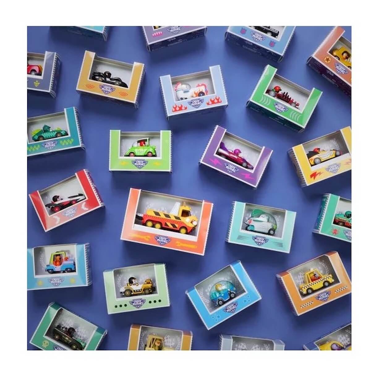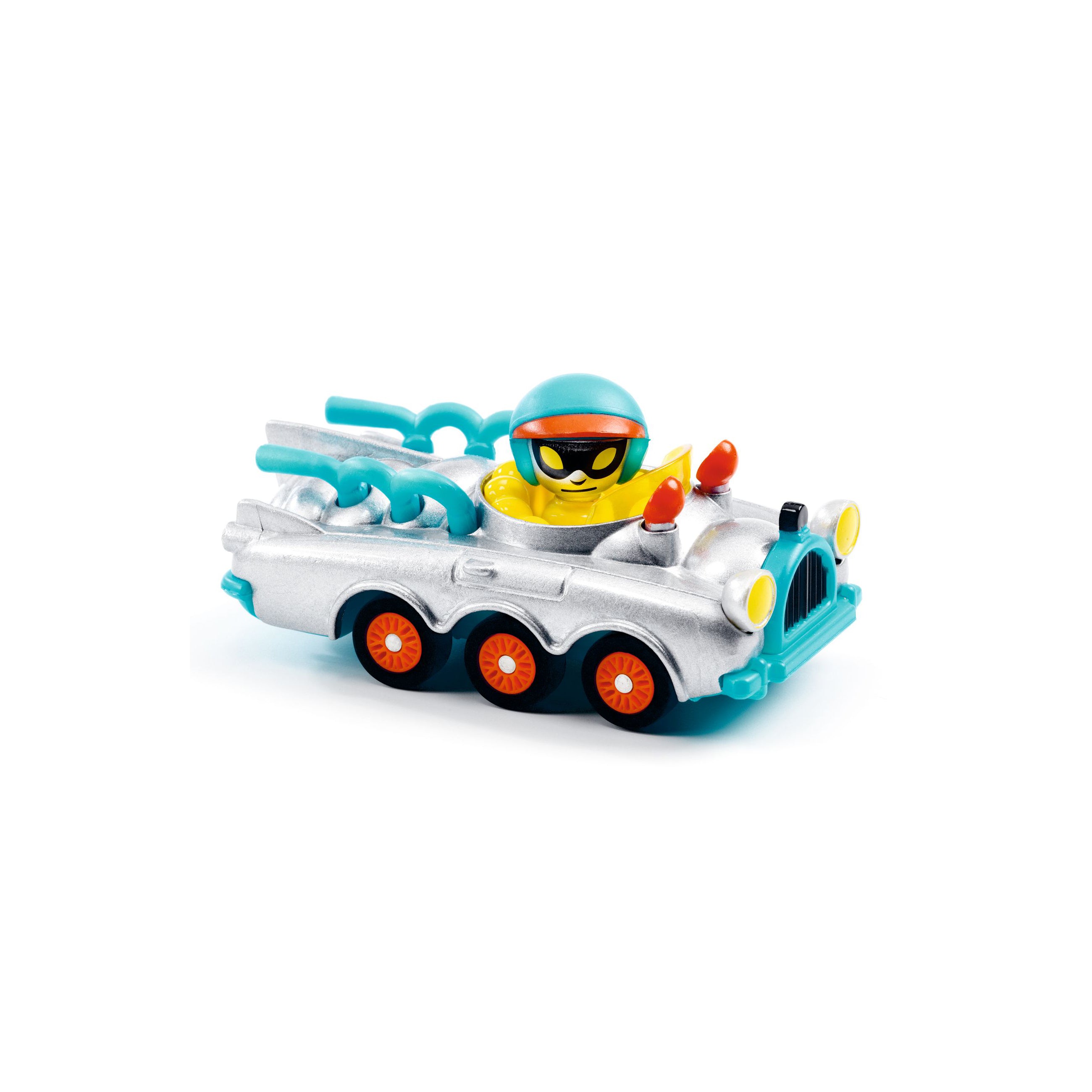 Sumérgete en la colección Crazy Motors de Djeco: coches metalicos a escala 1:43 con un toque retro y diseños desenfrenados. Steve Simpson ha creado personajes memorables como Piranha Kart, Motor Skull, Dingo Mobile o Hurry Police, cada uno con líneas atrevidas y colores vibrantes. Fabricados con precisión y acabados impecables, estos vehículos de juguete despiertan carreras épicas en la imaginación de niños de 3 a 10 años. Sus ruedas son de goma, tienen una suspensión independiente y la cabeza del piloto se gira. Ideales para jugar con ellos y para coleccionarlos.