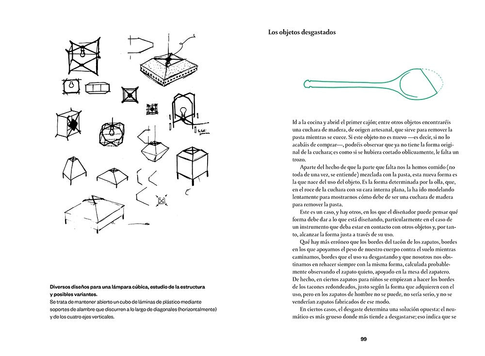 Repleto de ejemplos y referencias a nuestra vida diaria, esta obra nos invita constantemente a detenernos y a repensar las formas que nos rodean. Desde la visualidad de las letras escritas o dibujadas hasta la versatilidad de un material como el bambú, pasando por el valor de una cuchara o unos peldaños desgastados por el uso, o el brutal contraste entre las ostentosas cuberterías europeas y la modestia de los palillos japoneses, Munari nos introduce con la facilidad y la sencillez de los grandes maestros a las grandes cuestiones teóricas de las disciplinas del diseño y la creatividad.
