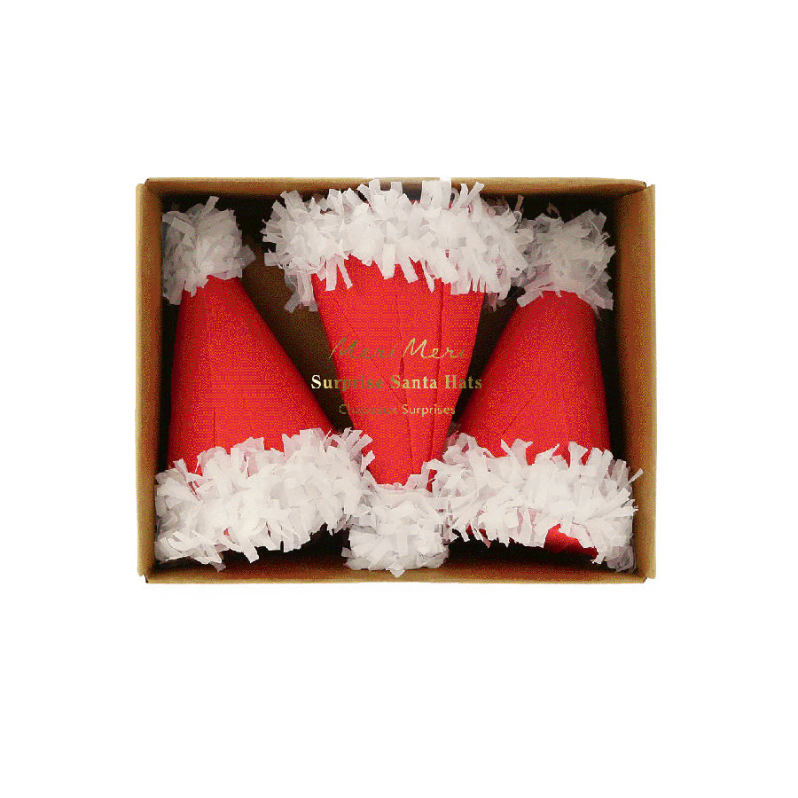 ¡Ho, ho, ho! ¡Esta versión moderna del icónico gorro de Papá Noel te hará lucir y sentirte fantásticamente festivo! Estos pequeños gorros no solo lucen increíbles, sino que están llenos de sorpresas: un gorro de fiesta, calcomanías, un chiste, un adorable borrador de Papá Noel y una pulsera de la amistad. También funcionan como adornos de mesa o en bolsas de fiesta.
