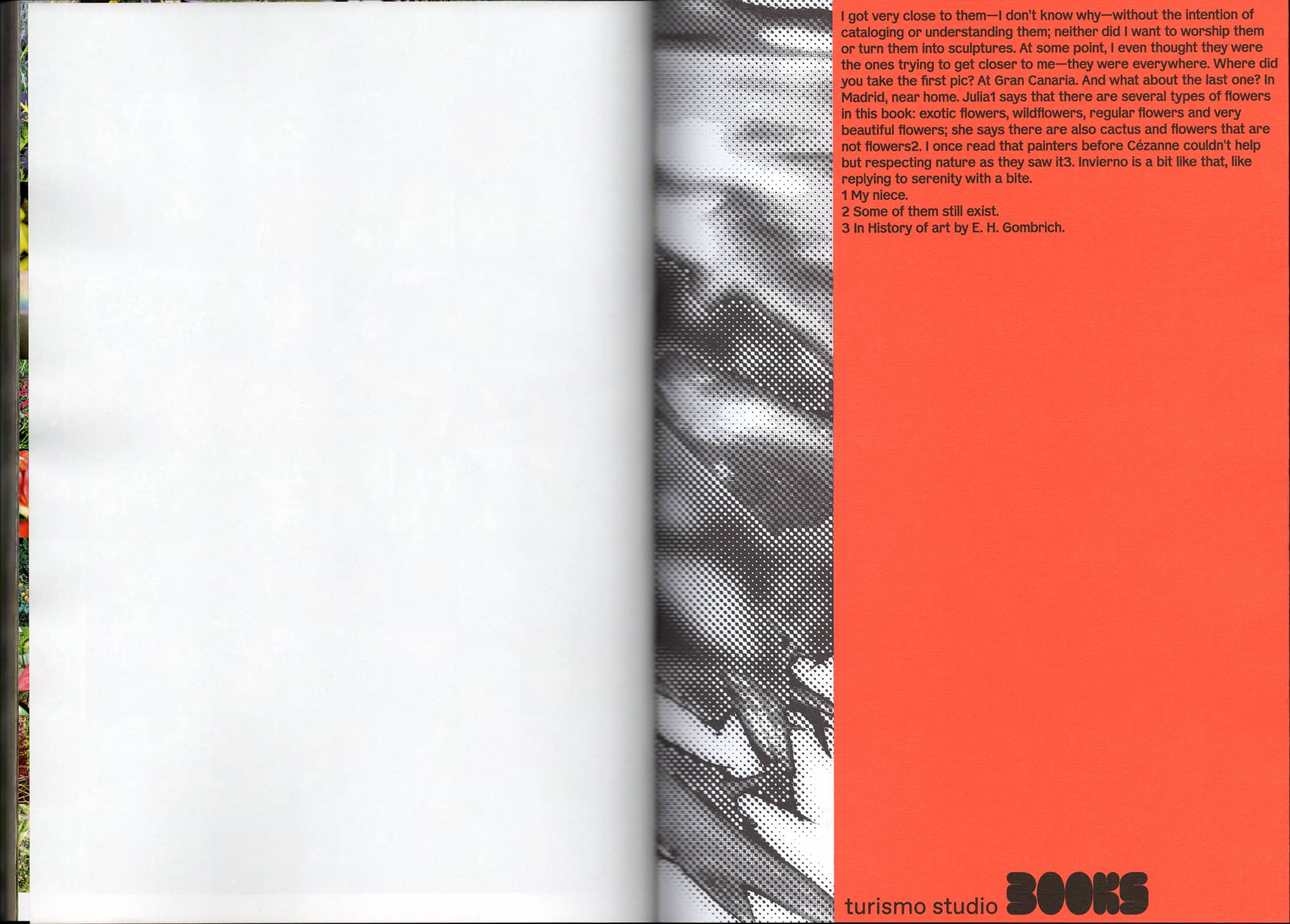 Este libro de fotografía huye de una interpretación de las flores como símbolo de lo vulnerable y lo inofensivo, mostrando en cambio su lado agresivo, fuerte, sucio, abstracto y pegajoso. Para resaltar la intención deslumbrante del proyecto, diseñamos Invierno como un bloque contundente y compacto. Contrastamos la suavidad de la cubierta de papel offset con las páginas interiores satinadas que resaltan el carácter de las fotos.