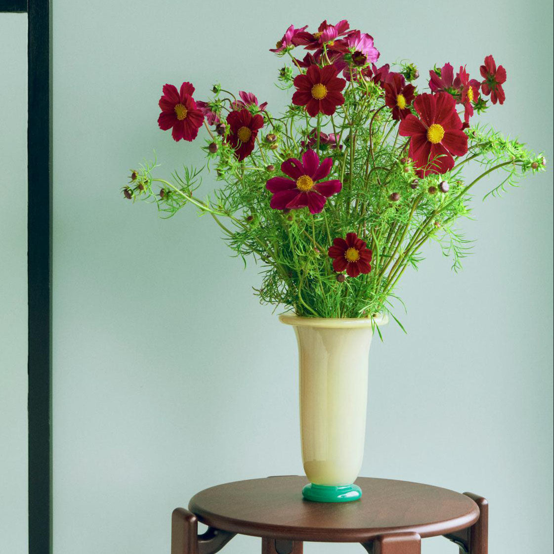Su forma, combinada con una cuidada selección de colores, convierte al Jarrón Imperio en un jarrón elegante y versátil. Su diseño de vidrio se presenta en hermosos tonos tenues, complementados con detalles tonales o contrastantes. Disponible en diferentes tamaños, el jarrón es ideal para exhibir flores en alféizares y mesas, además de ser un objeto decorativo por sí solo.